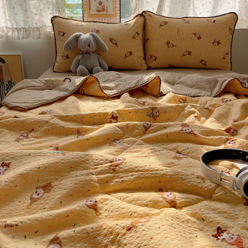 (总)梵希雅 2026新款A类贝壳秀费尔岛风泡芙棉夏被空调被四件套,红棕萌犬-夏被,焦糖木马-夏被,甜粉摇马-夏被,雾蓝自由马-夏被,棕蓝麋鹿-夏被