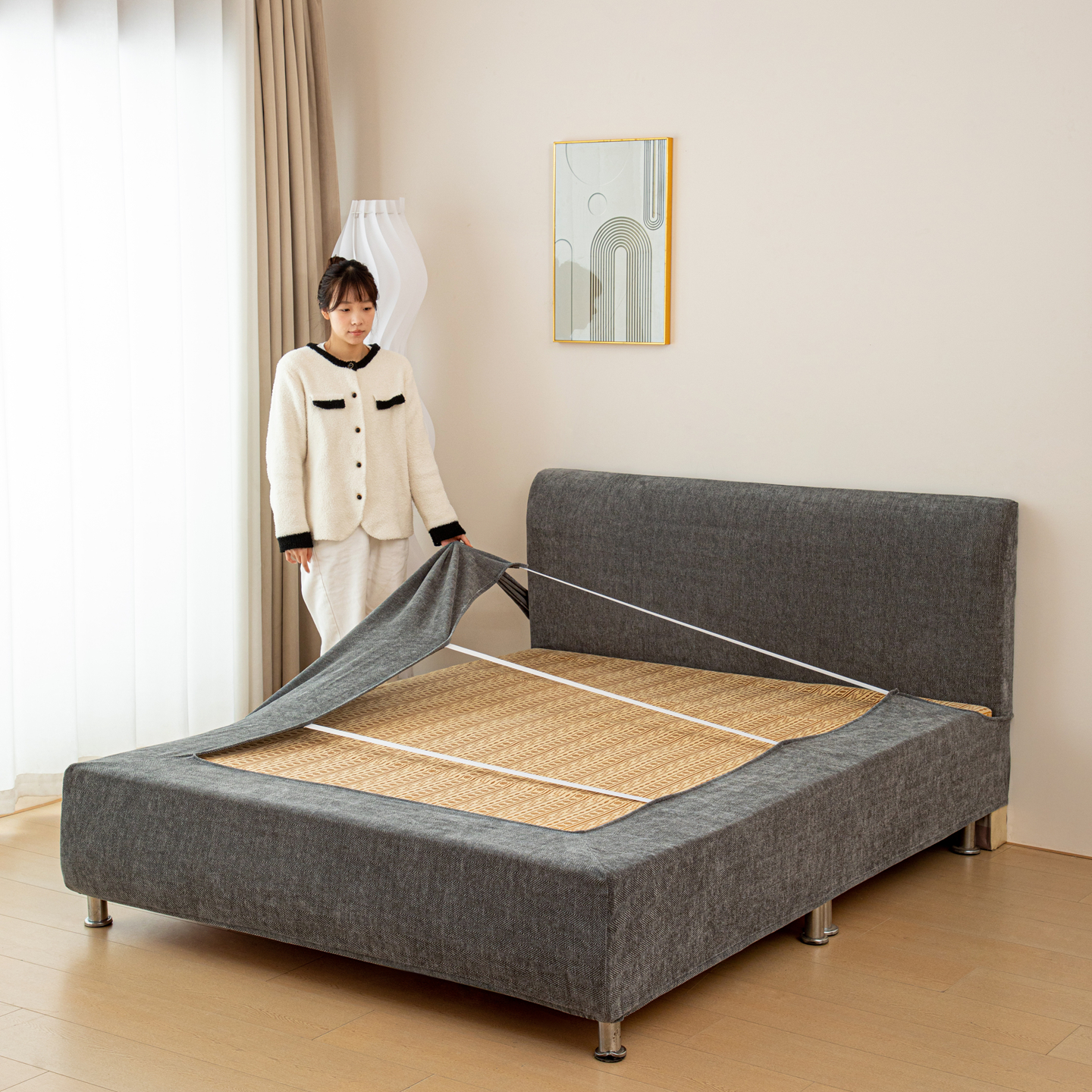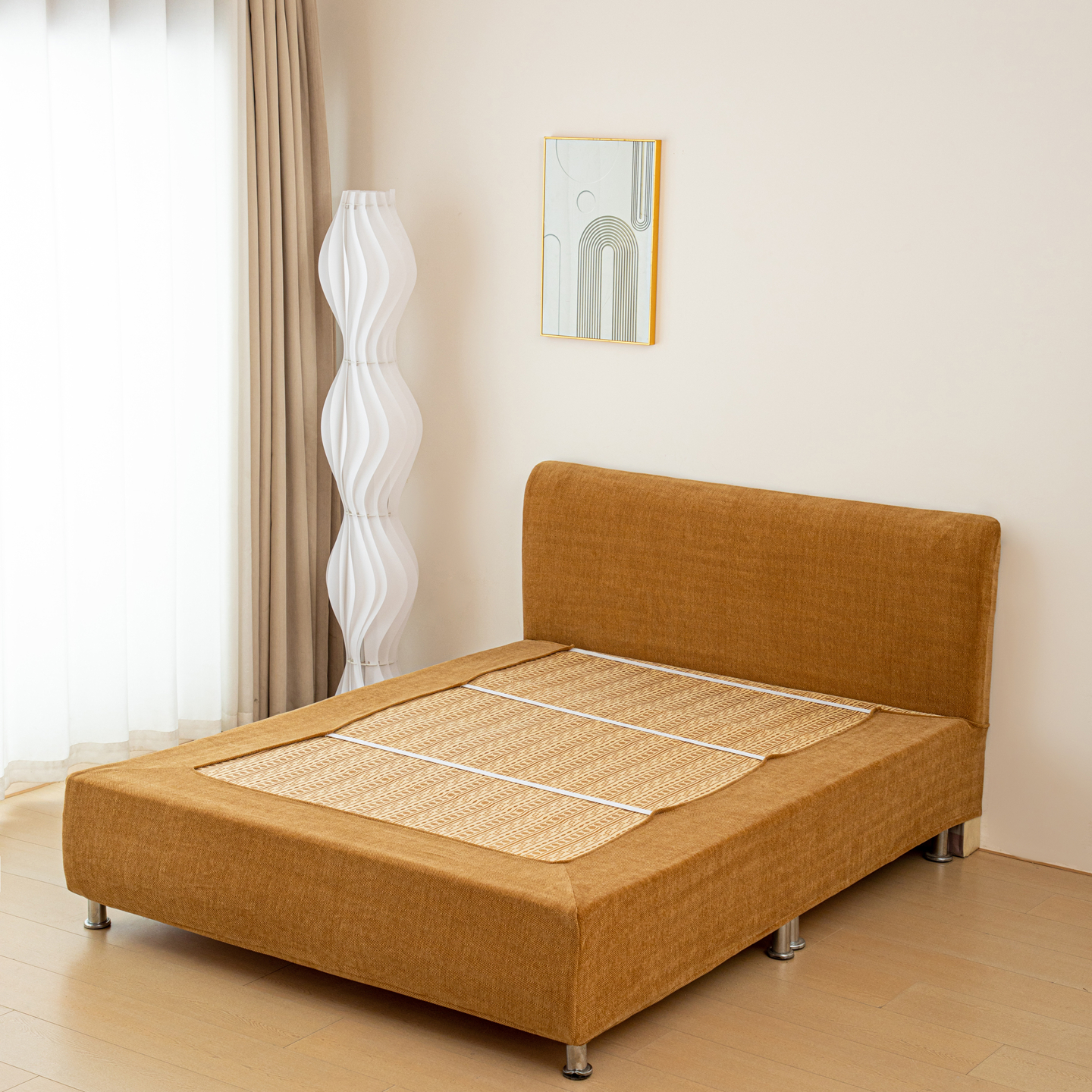 • 91家纺网 家纺一手货源 找家纺 沐沐家纺 2026新款南笙床头罩+床裙罩 咖色