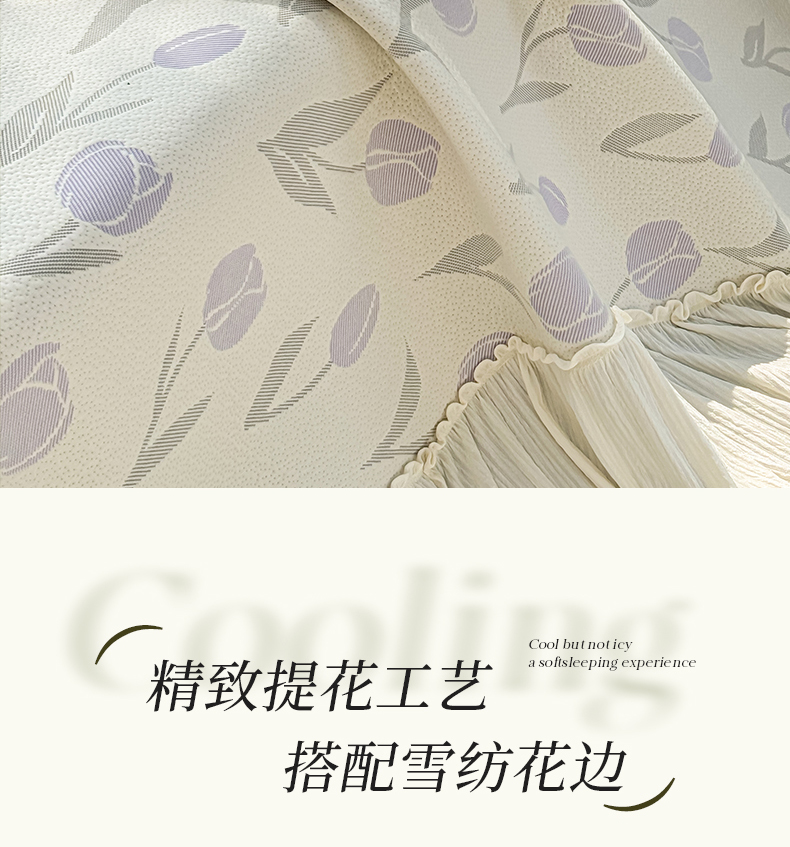 • 91家纺网 家纺一手货源 找家纺 乐朵家居 2026新款 奶芙 郁金香 弧度款 凉豆豆 凉席三件套-紫