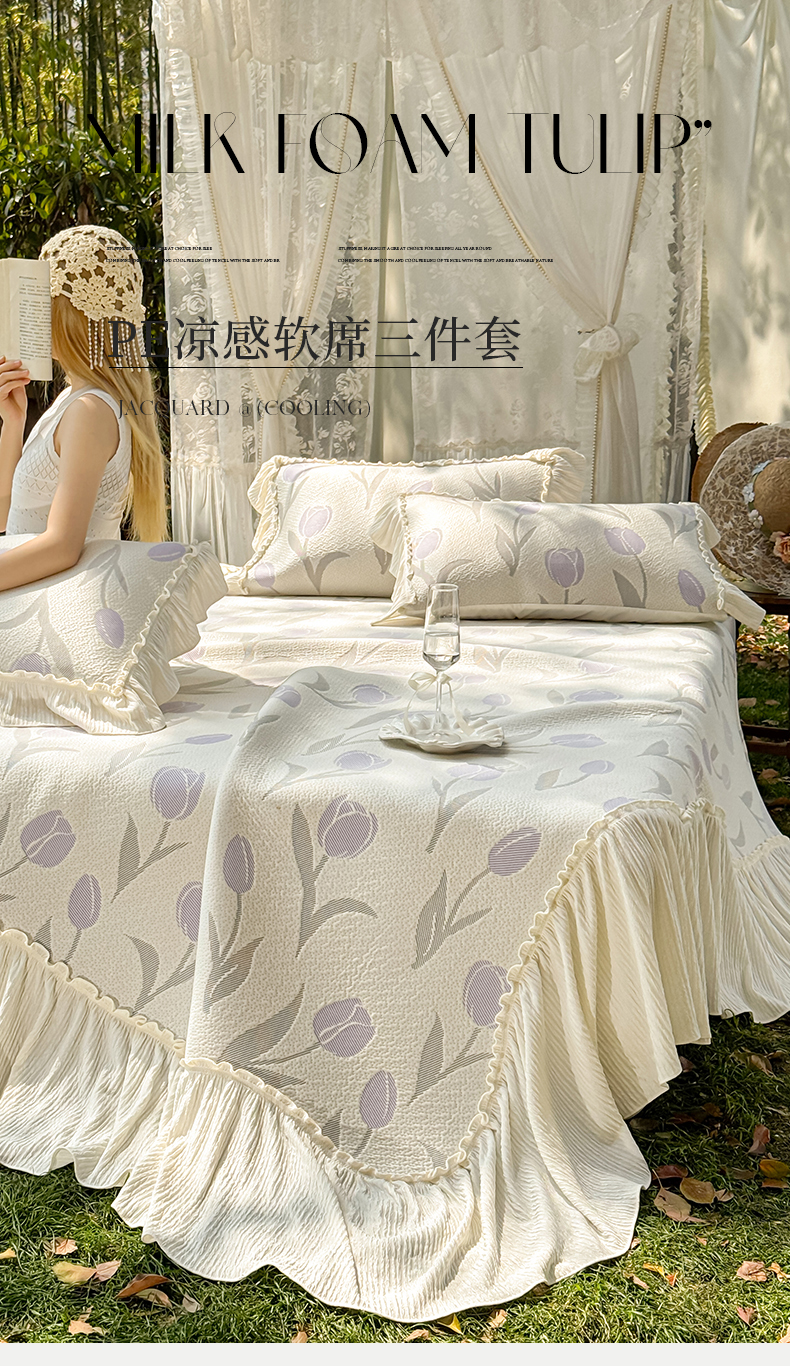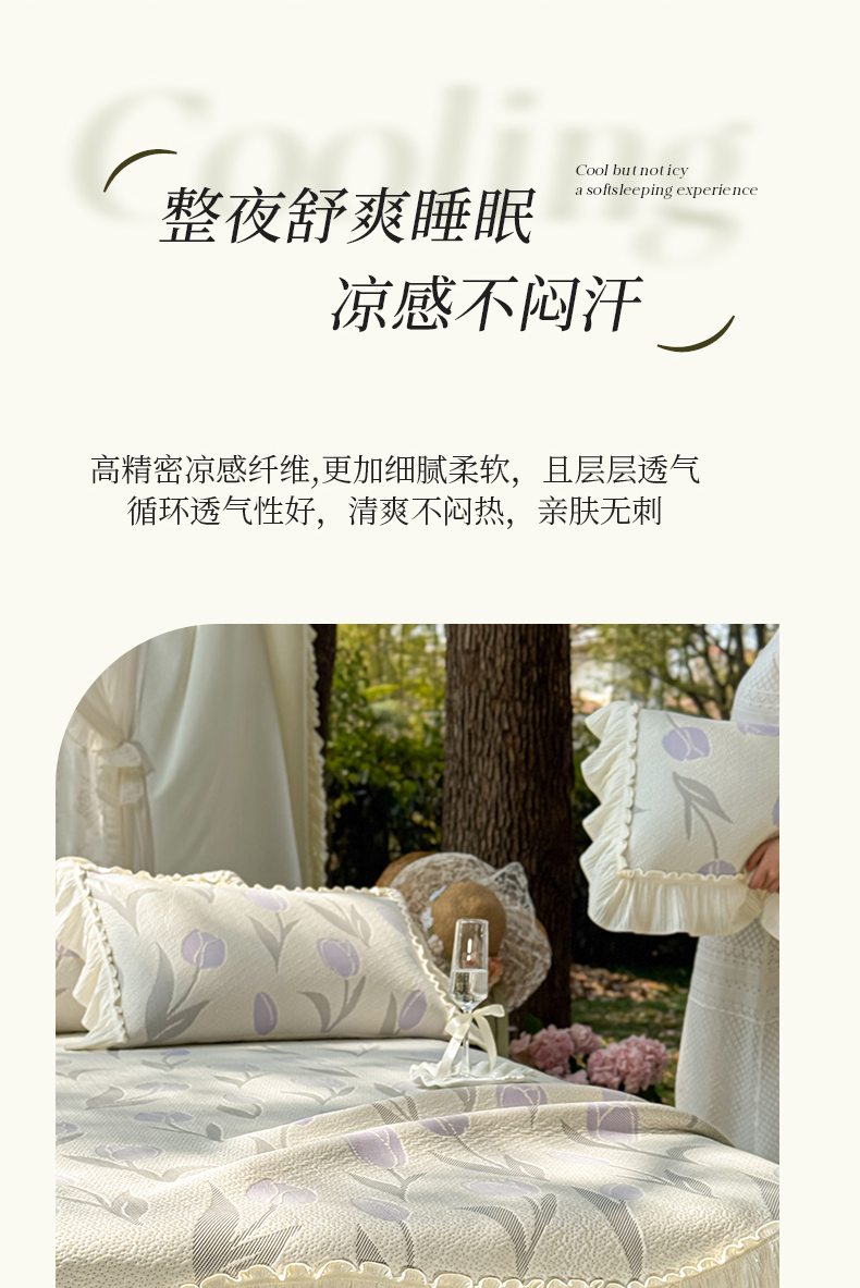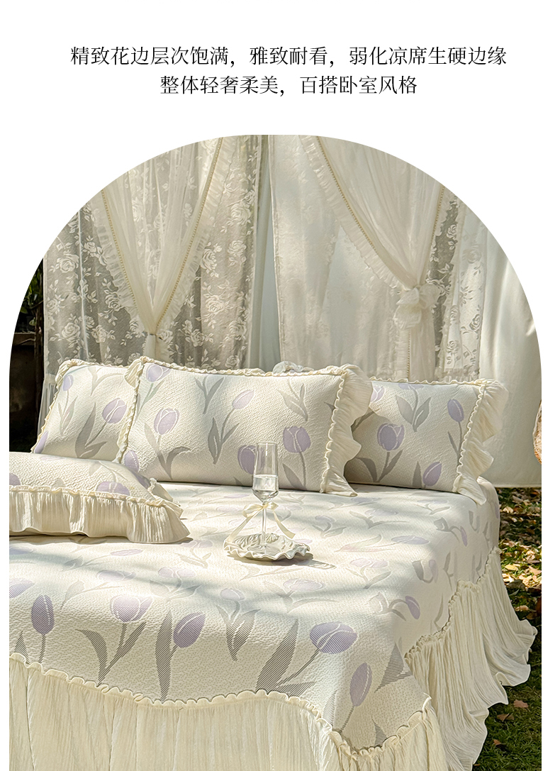 乐朵家居 2026新款 奶芙 郁金香 弧度款 凉豆豆 凉席三件套-紫