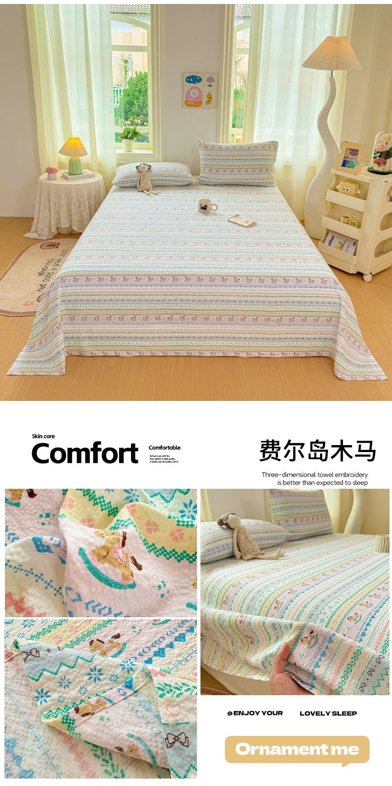 (总)梵朴 2026新款A类泡芙棉云感木棉邹邹纱双层纱床笠三件套,豹纹泡芙狗,花从小兔,花季紫,蝴蝶结小兔,酒渍櫻桃,春日花语,璀璨星空,费尔岛木马,快乐马里奥,快乐小狗,蓝调爱心,蓝色领结狗,猫咪蓝,萌宠,木马小花,暖檣枝,泡芙KT-绿,泡芙KT-紫,甜品萌狗,星星玩偶黄,星星玩偶紫,紫花免
