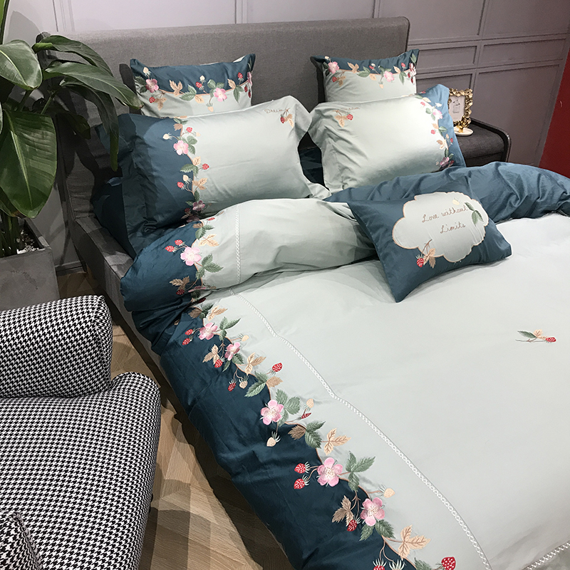 当前位置: 91家纺网 > 商品网购 > 床品套件 > 四件套 > 长绒棉四件套 > 馨蕊家居 60s双股埃及长绒棉四件套 蜜语时光