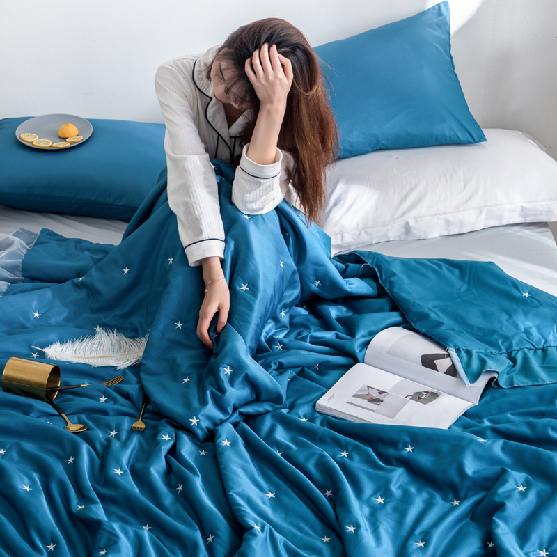 漫调 独家定制ins风满天星莫代尔天丝夏被刺绣夏被 布鲁斯蓝