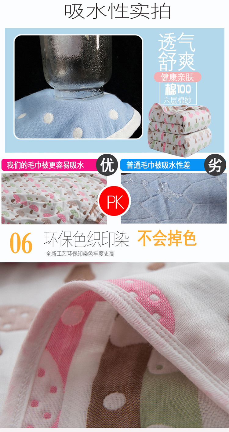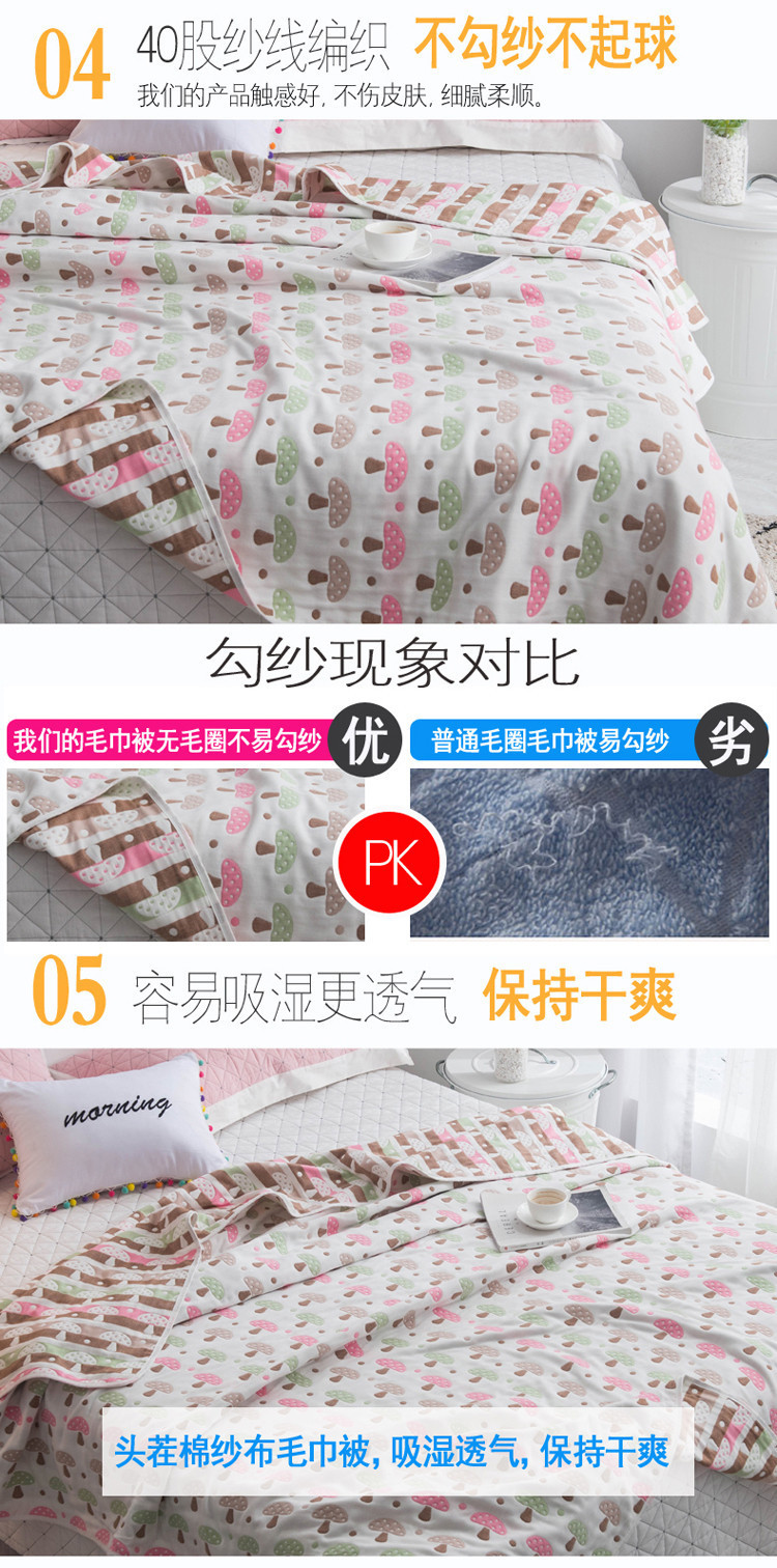 商品名称:朴尔家纺 六层全棉纱布毛巾被 日式蘑菇