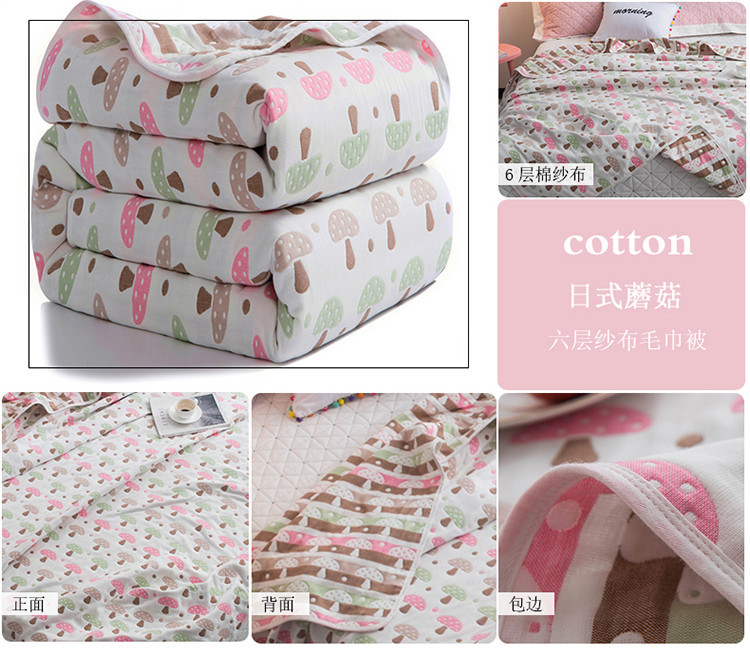 朴尔家纺 六层全棉纱布毛巾被 日式蘑菇