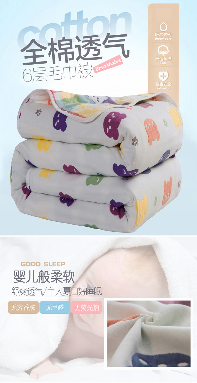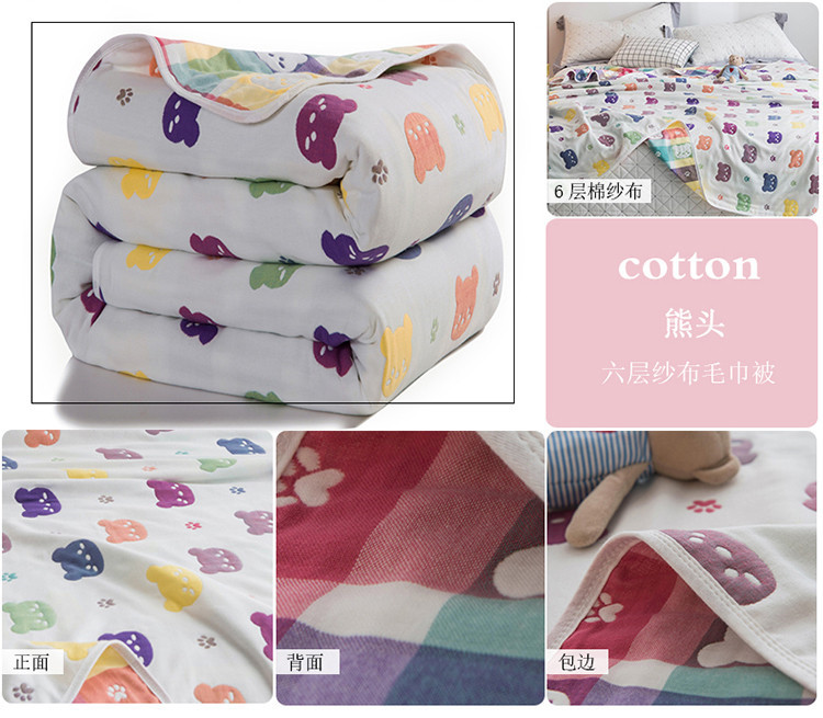 商品名称:朴尔家纺 六层全棉纱布毛巾被 熊头