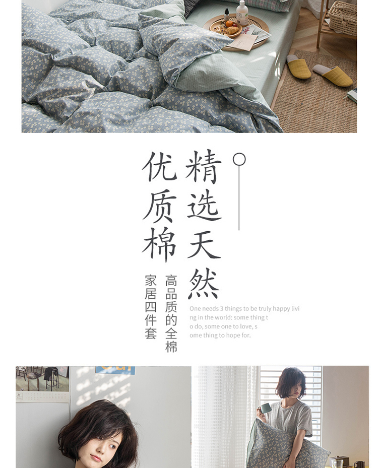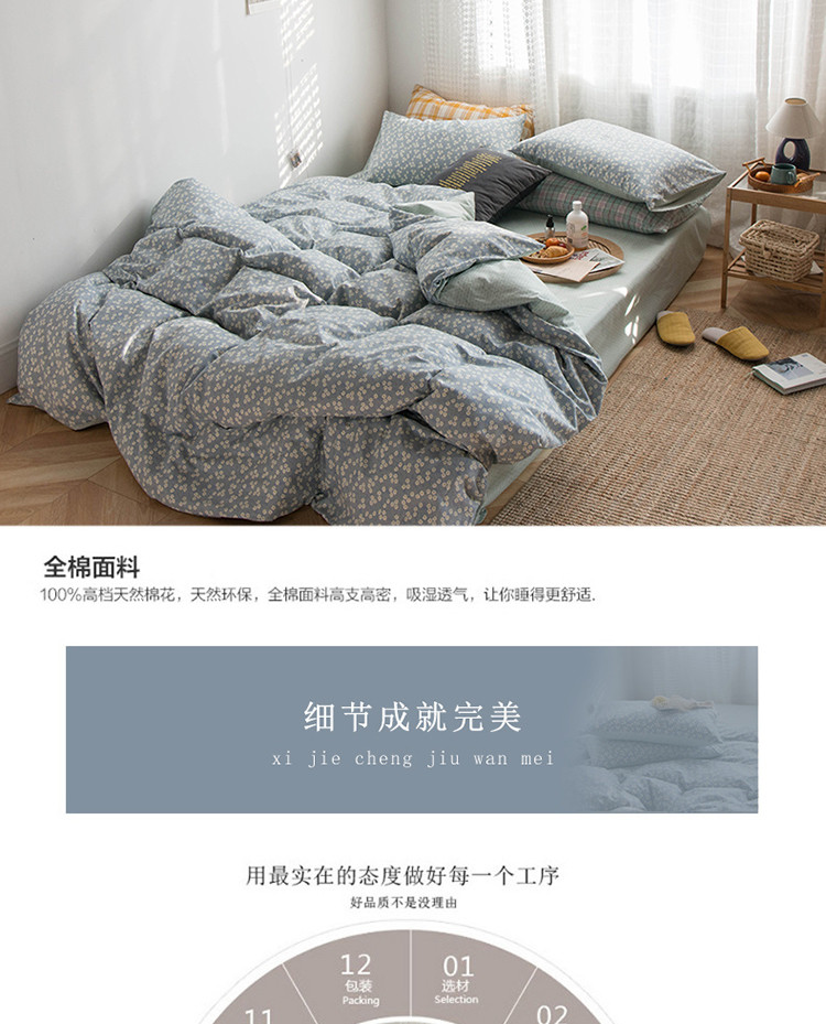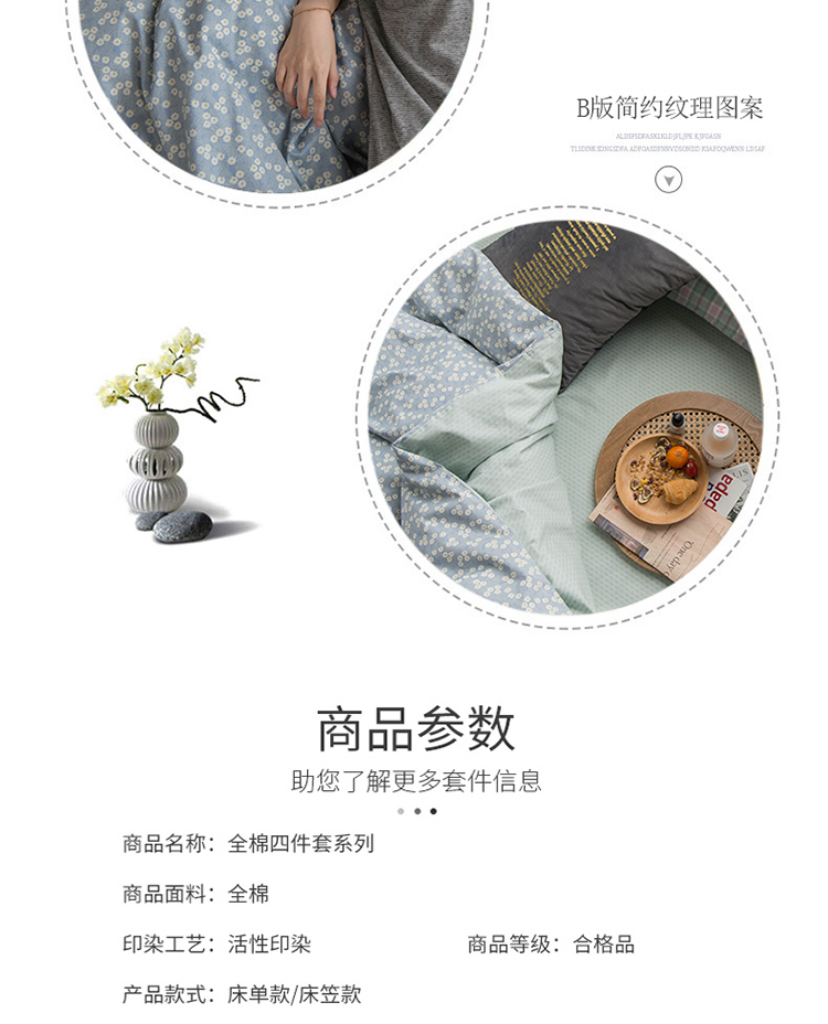 当前位置: 91家纺网 > 商品网购 > 床品套件 > 四件套 > 全棉普通四件套 > 希文 2020年全棉印花四件套素雅系列淡雅