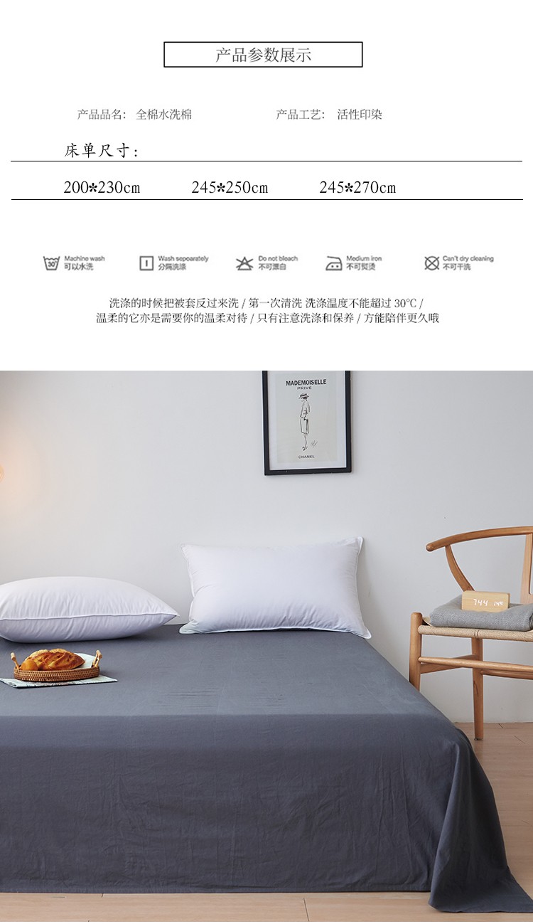 商品名称:MR.PIG全棉水洗棉床单单件简约纯色纯棉学生宿舍单双人被单
