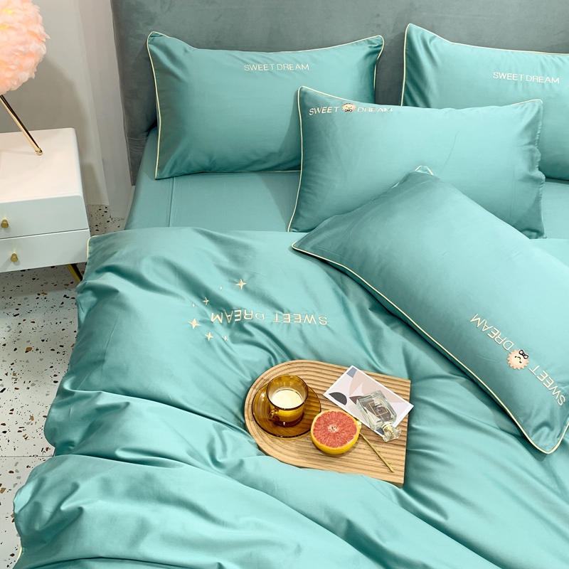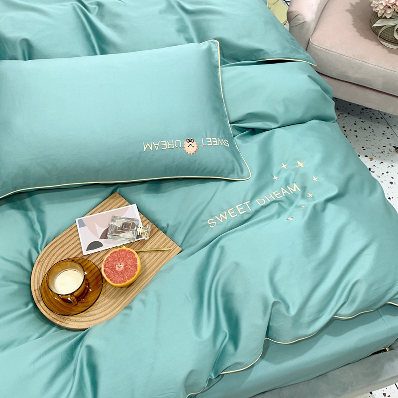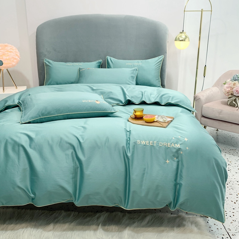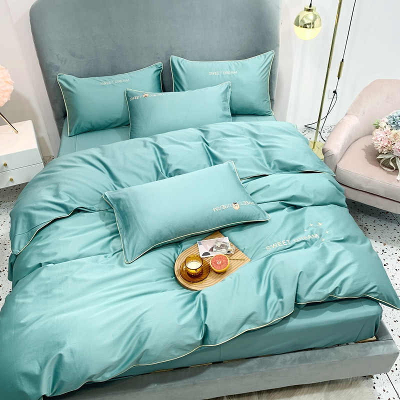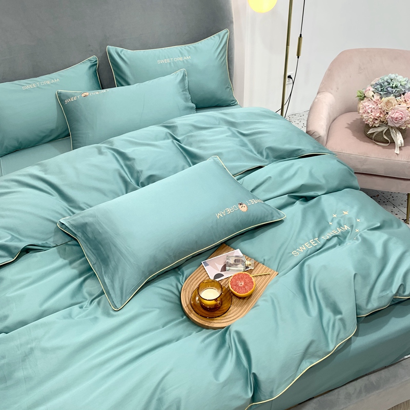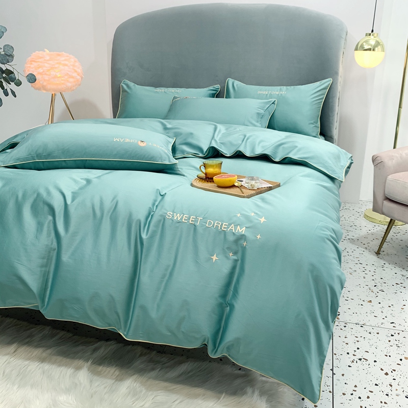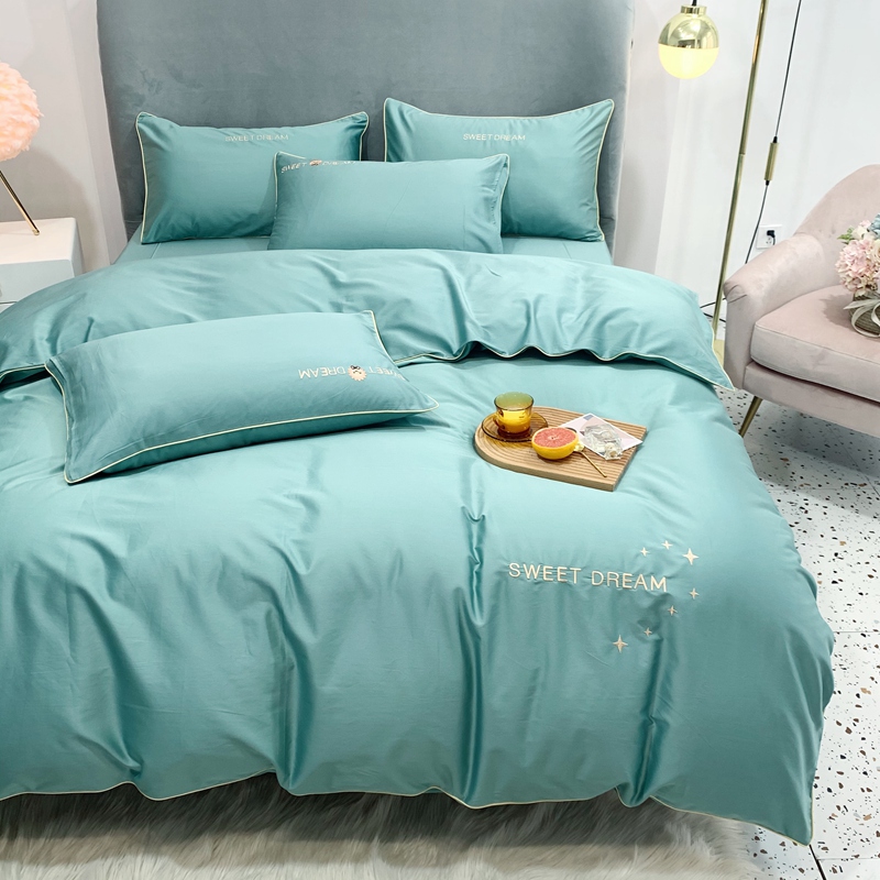 馨蕊家居 2021新款60s双股埃及长绒棉四件套 天蓝
