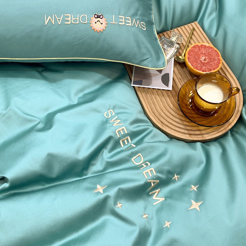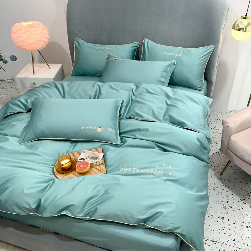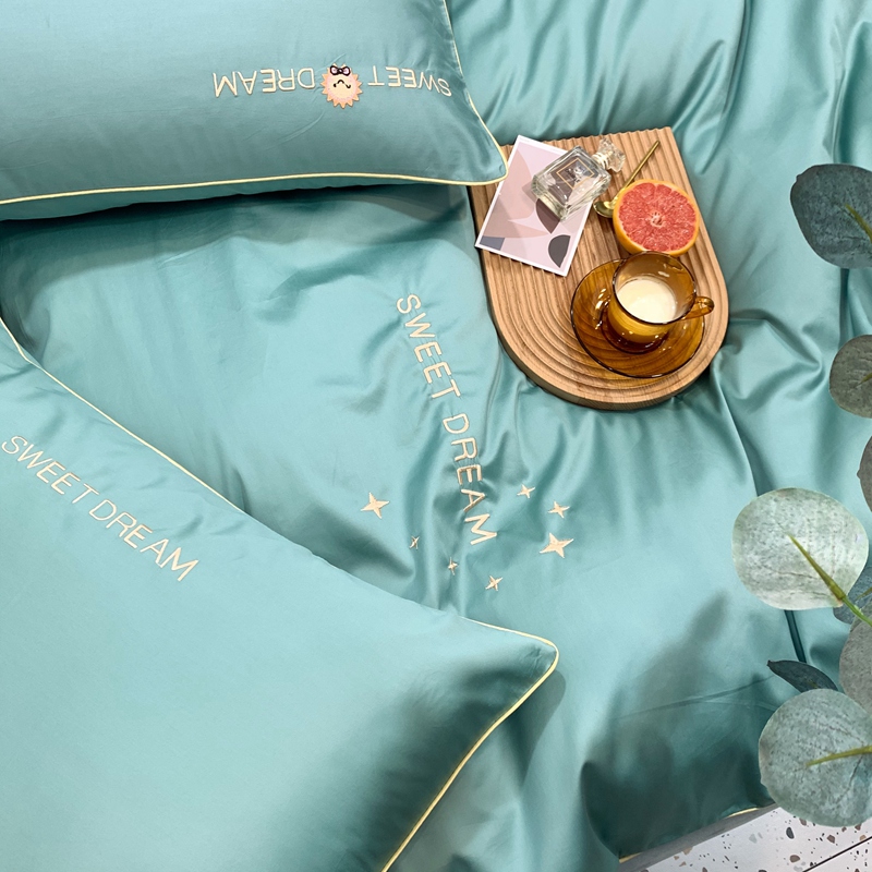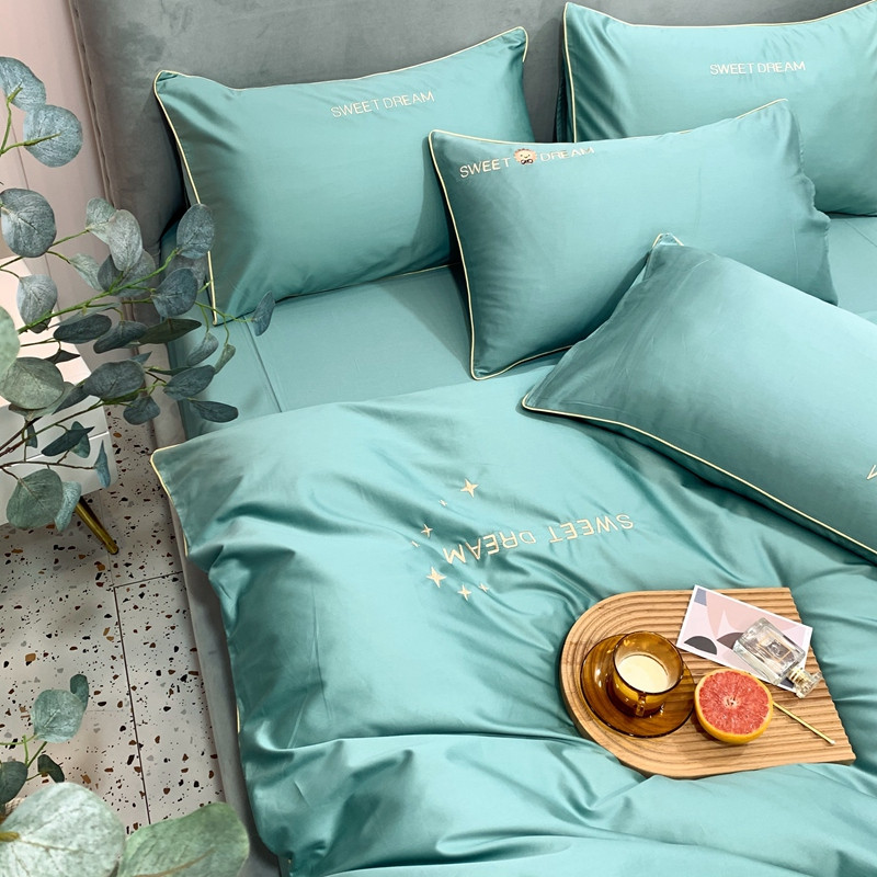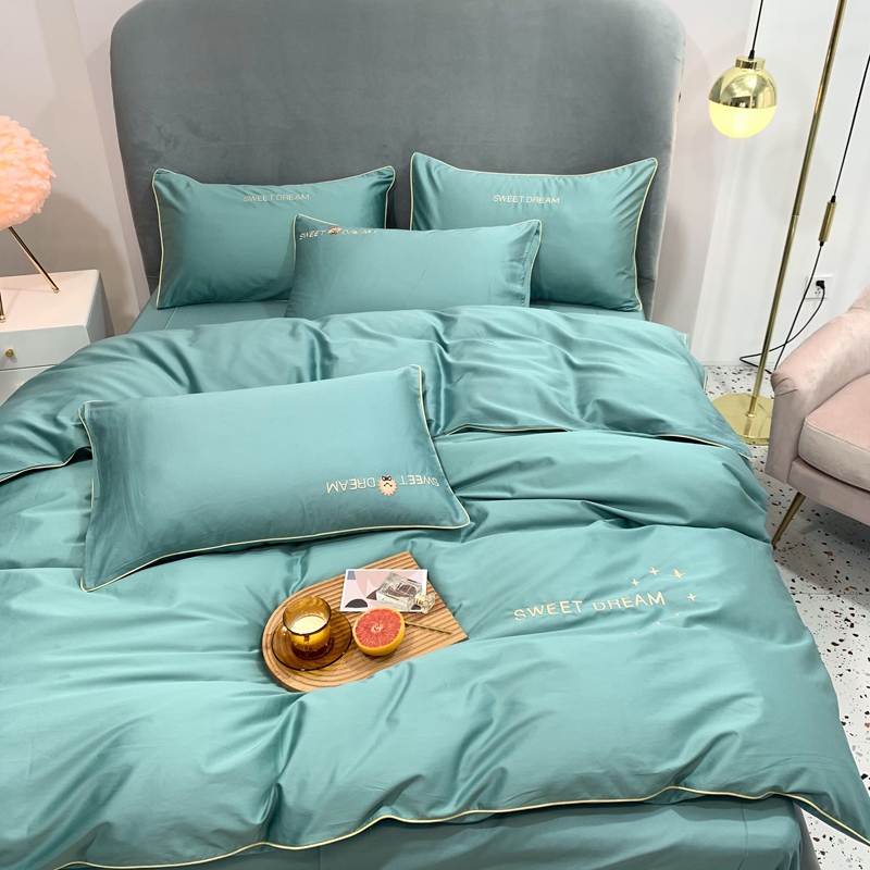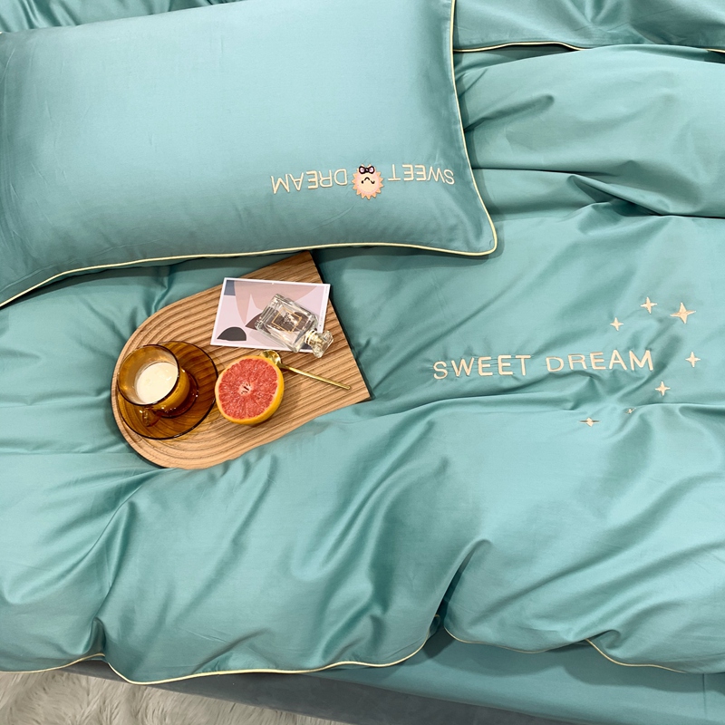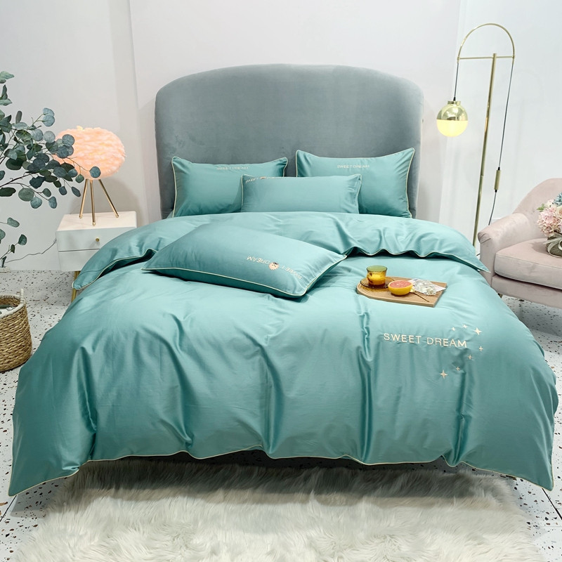 馨蕊家居 2021新款60s双股埃及长绒棉四件套 天蓝