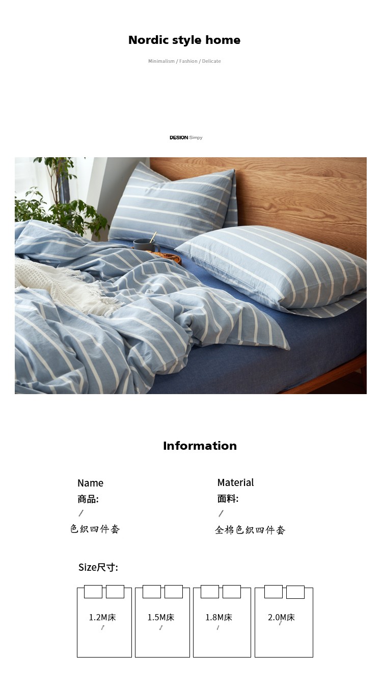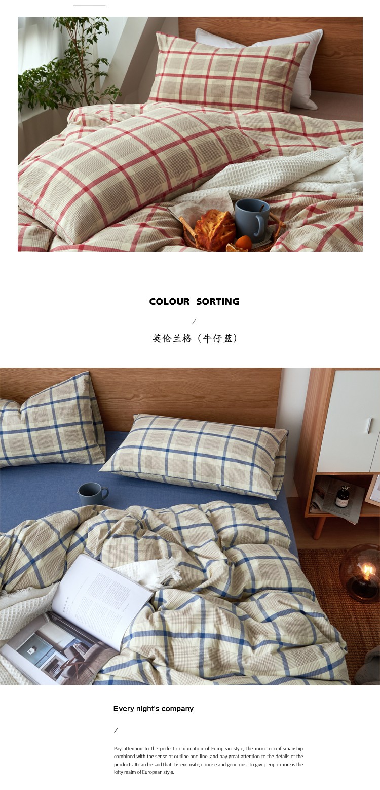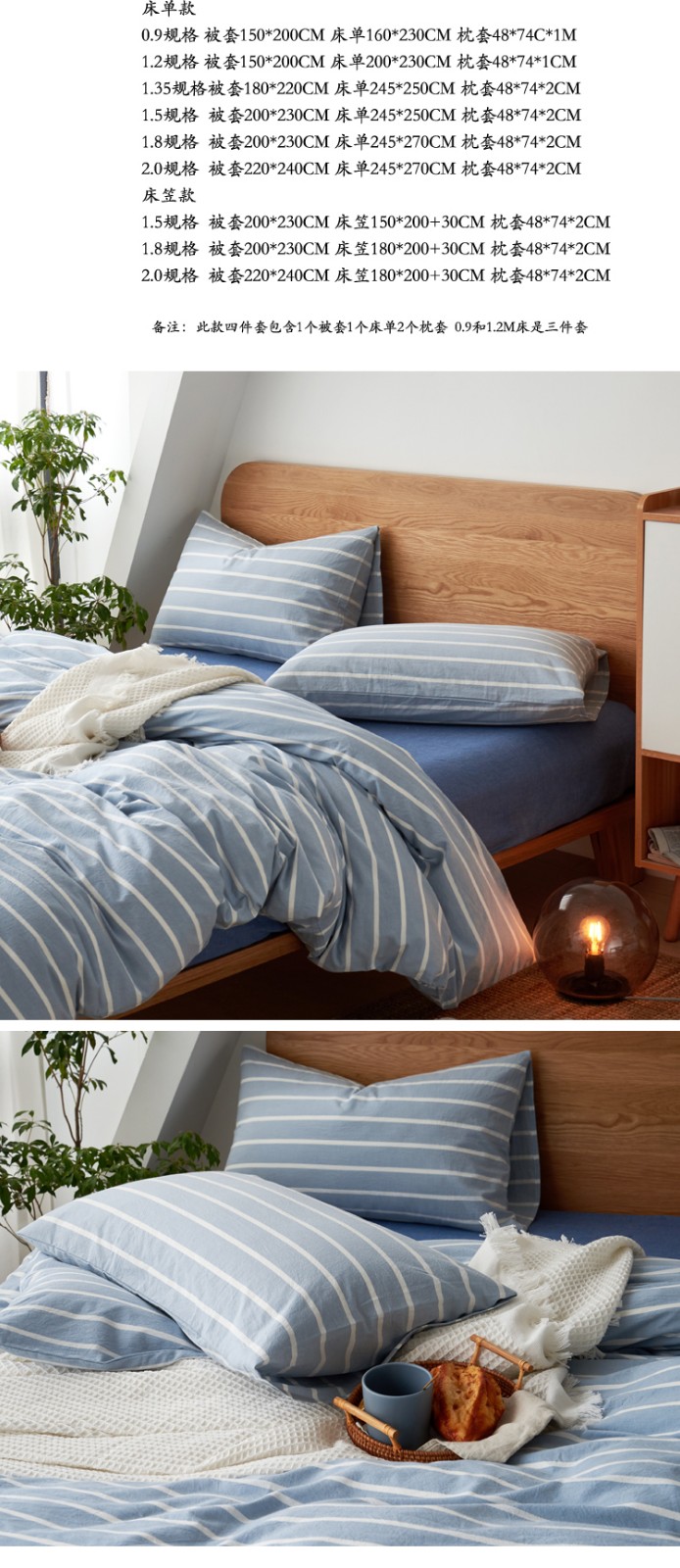 当前位置: 91家纺网 > 商品网购 > 床品套件 > 四件套 > 色织四件套 > 全棉色织水洗棉纯棉四件套床上用品学生三件套宿舍床单被套床笠款