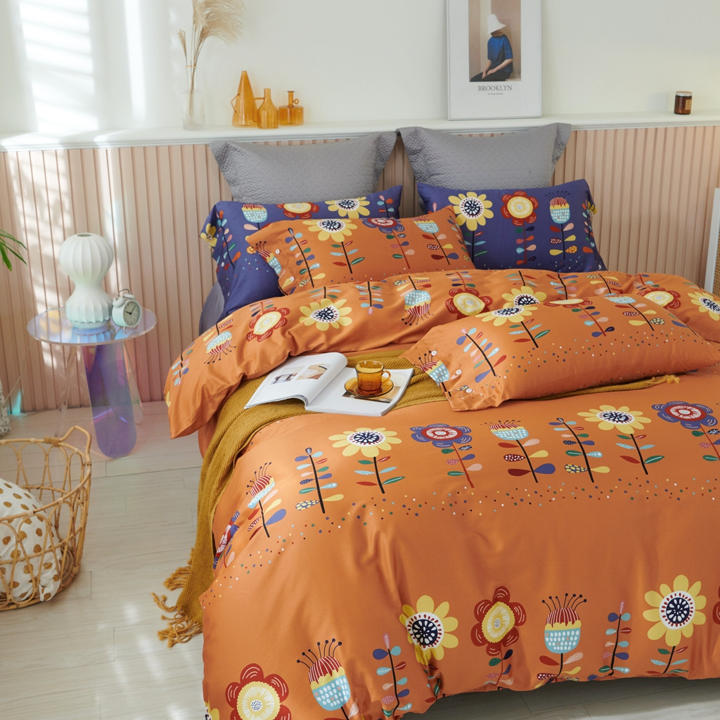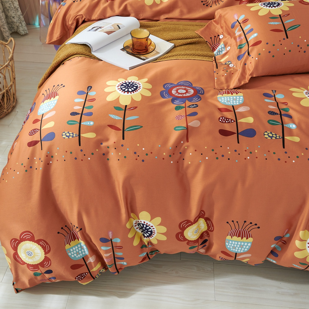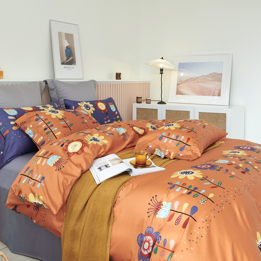 优然居 2020新款60S长绒棉活性印花四件套 春华橘色