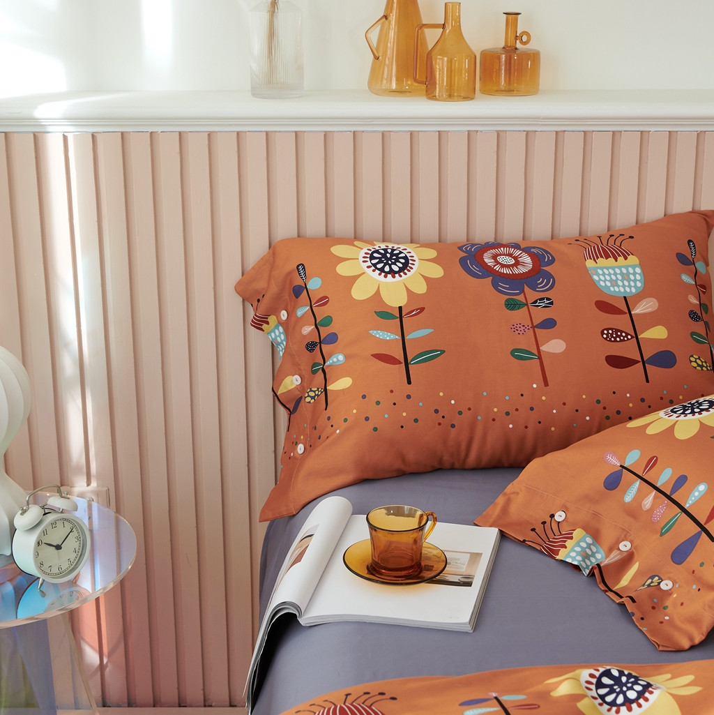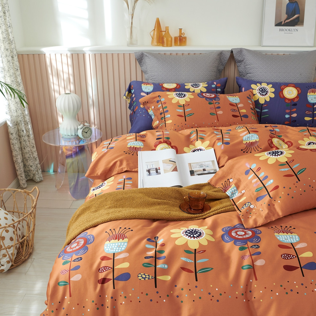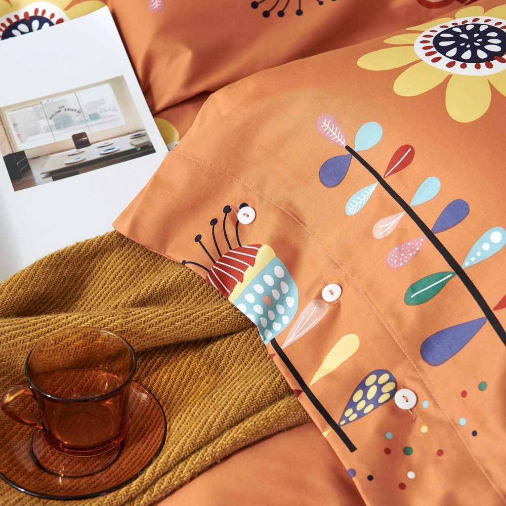 优然居 2020新款60S长绒棉活性印花四件套 春华橘色