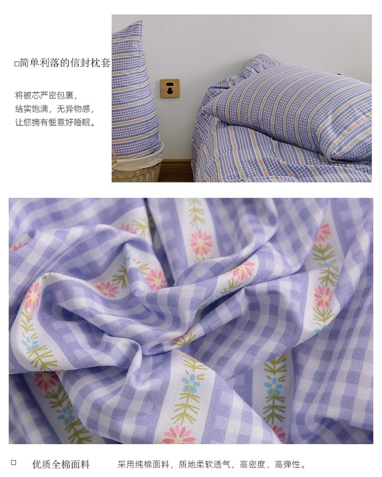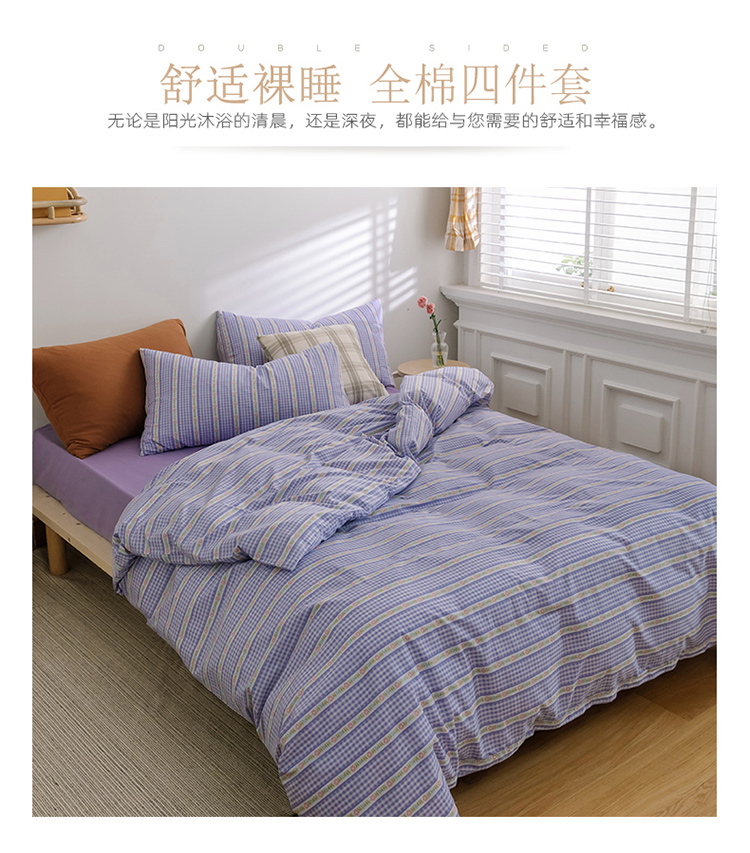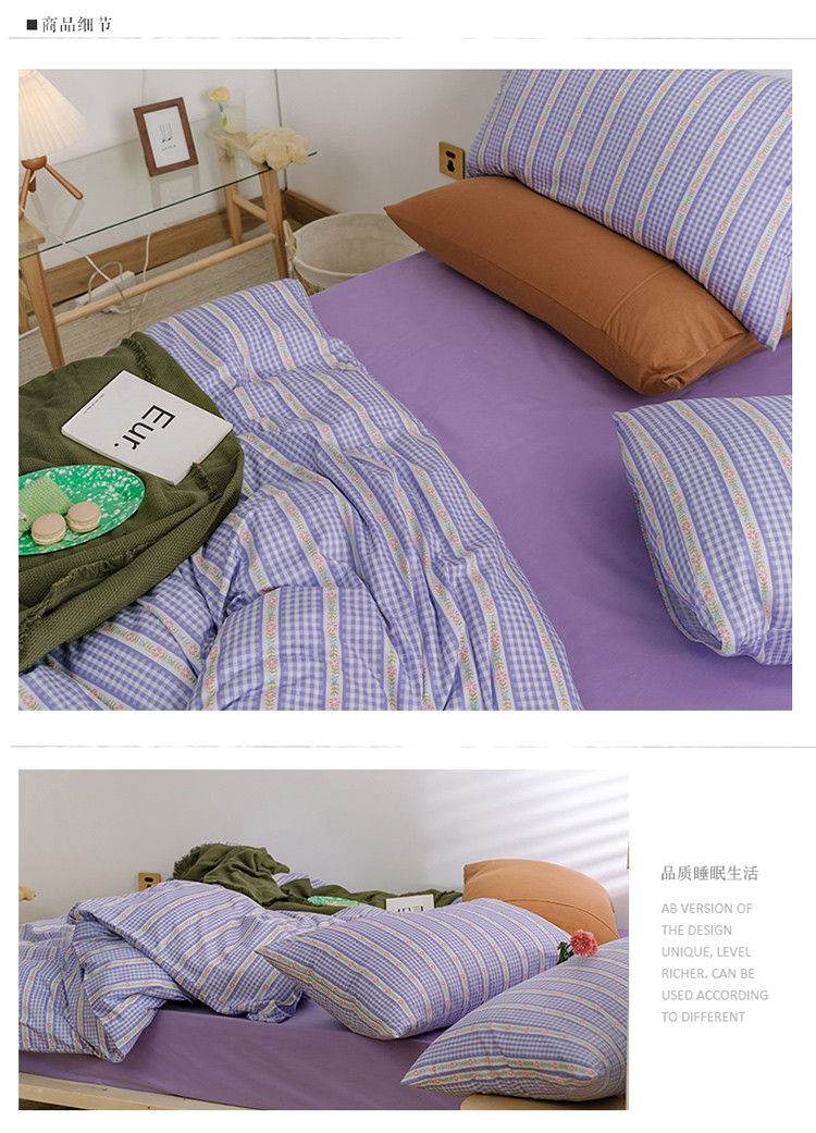 窝米2020新款全棉韩式公主风花边普通款四件套格子系列洛璃紫