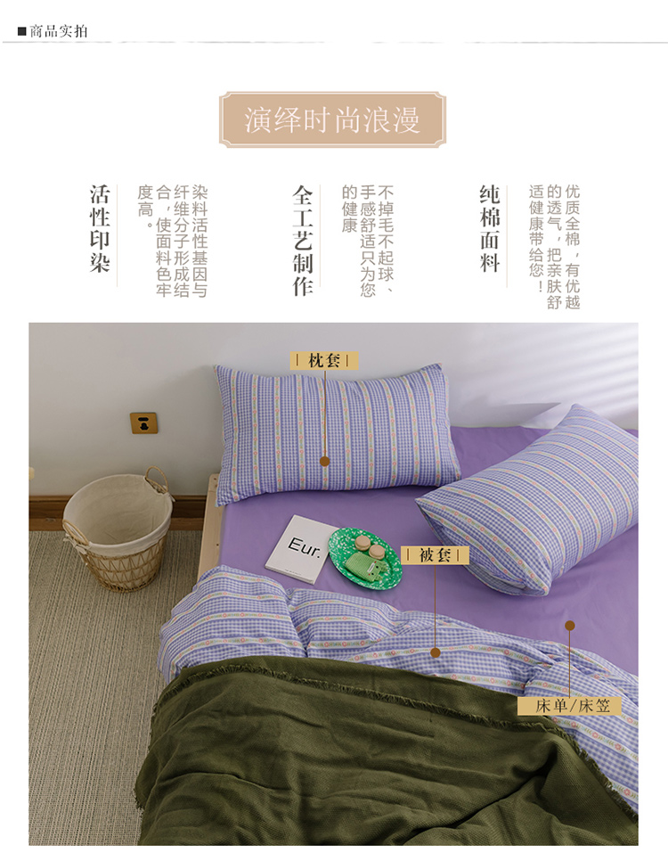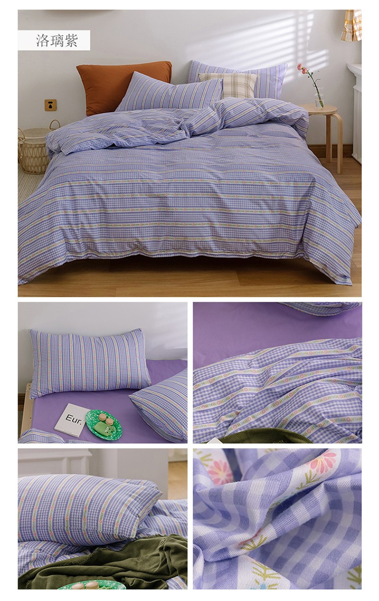 商品名称:窝米2020新款全棉韩式公主风花边普通款四件套格子系列洛璃紫