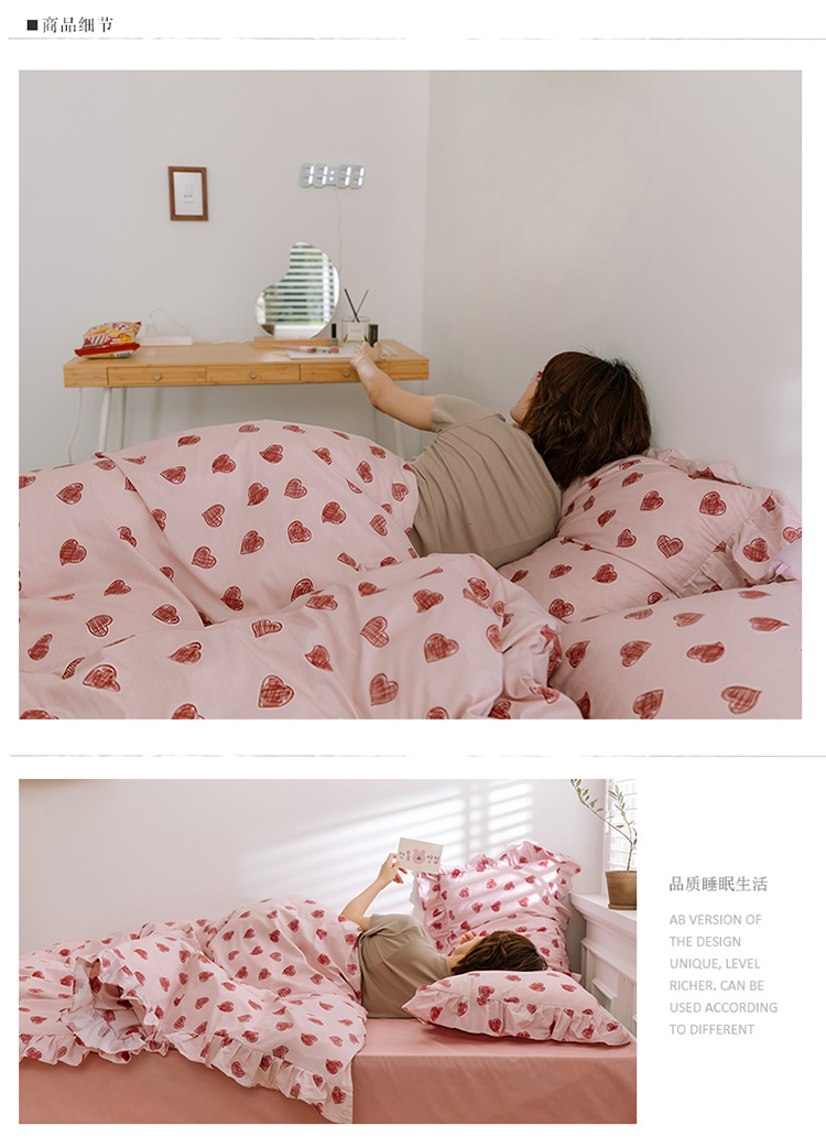 当前位置: 91家纺网 > 商品网购 > 床品套件 > 四件套 > 全棉普通四件套 > 窝米 2020新款全棉韩式公主风花边工艺款格子系列 甜心