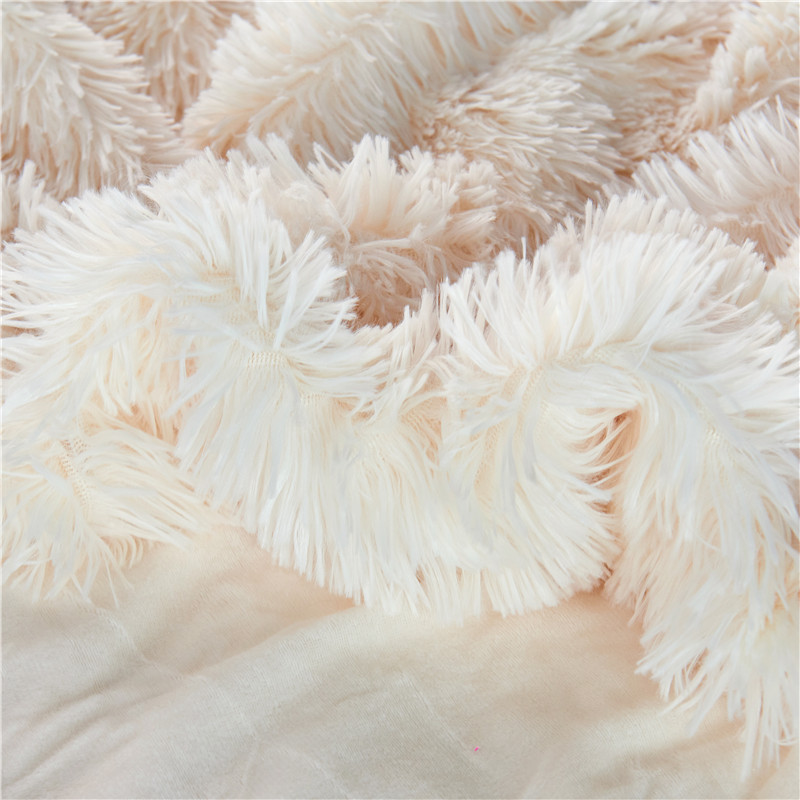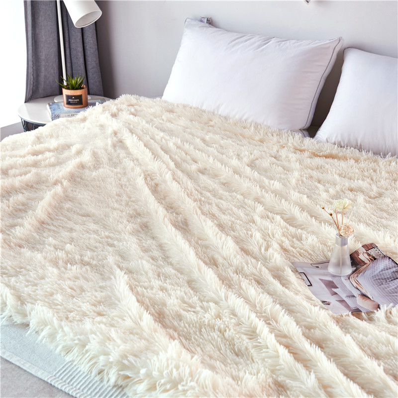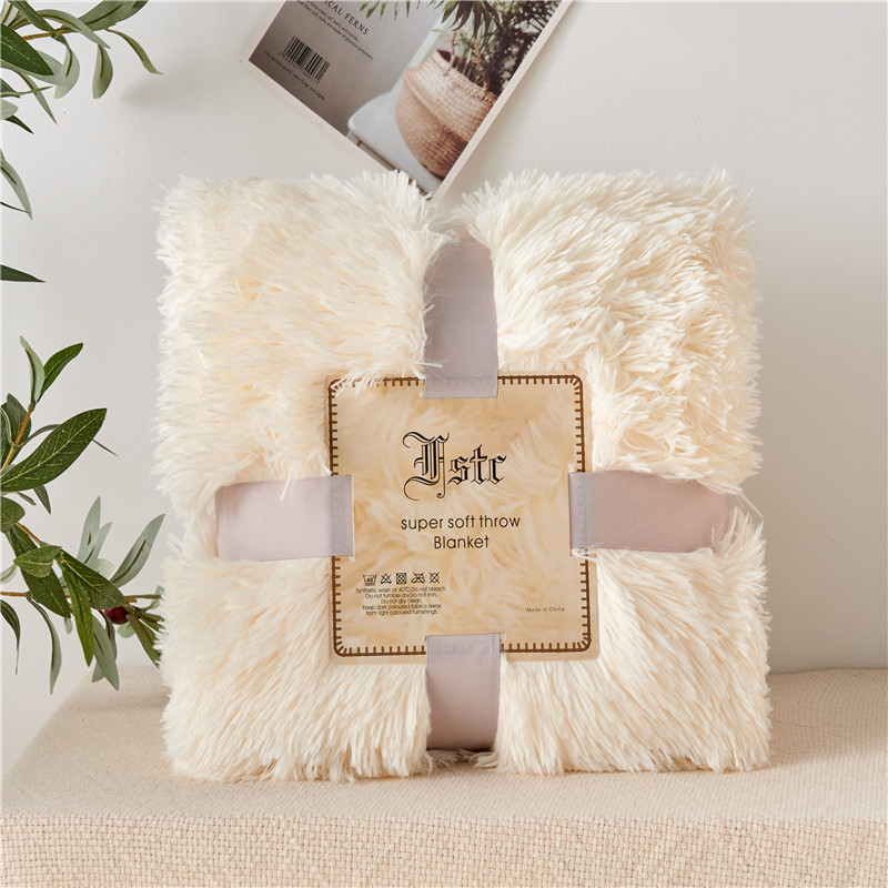 品尚嘉 2025水貂绒毛毯长毛绒法莱绒双层跨境外贸毯子 奶白