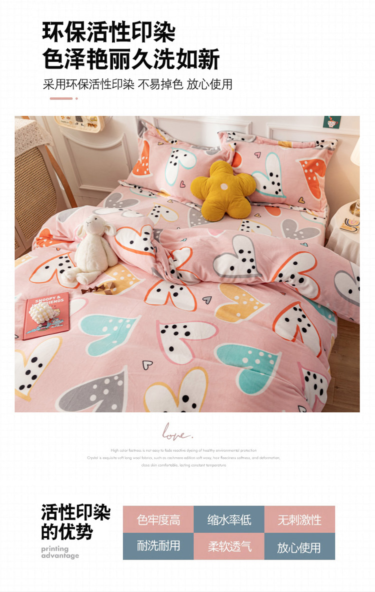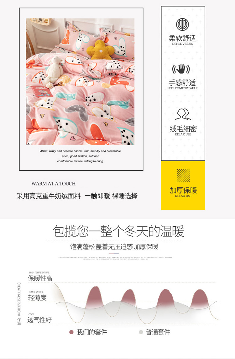 商品名称:珺柔 2020新款高克重牛奶绒四件套 甜馨