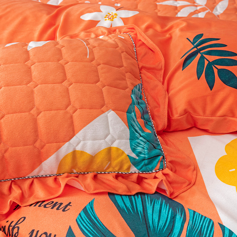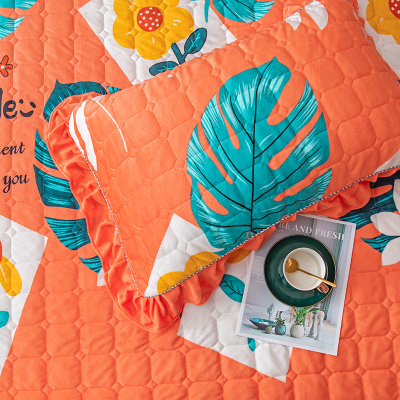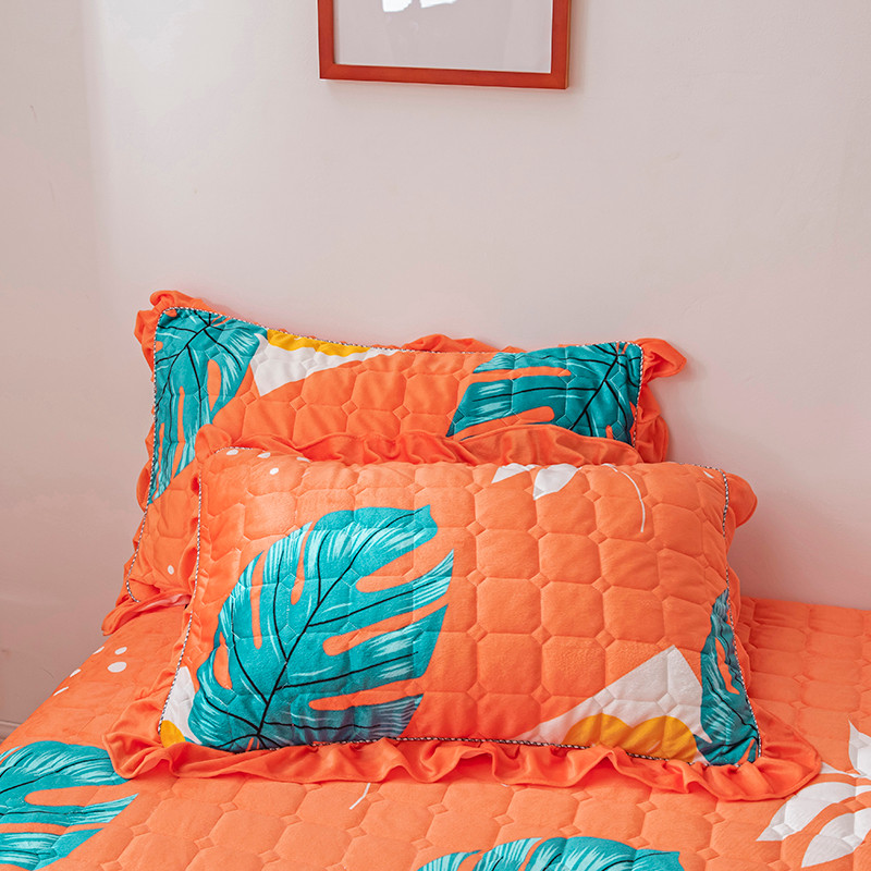 • 91家纺网 家纺一手货源 找家纺 纽缦 2020新款夹棉枕套一对 陌上花开橘红