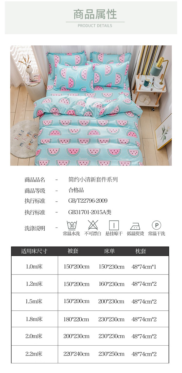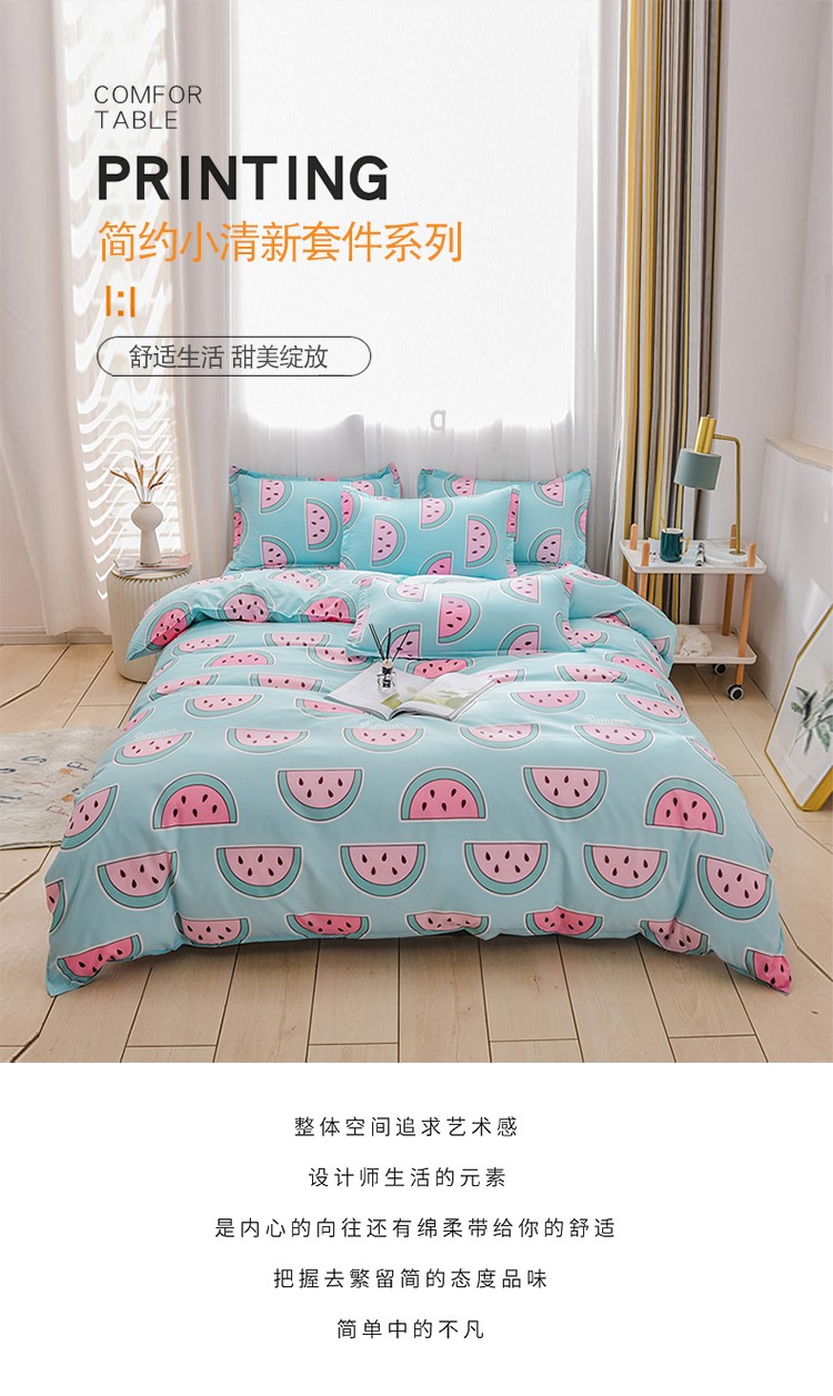 商品名称:乐居坊 2020新款简约小清新芦荟棉四件套 爱上西瓜