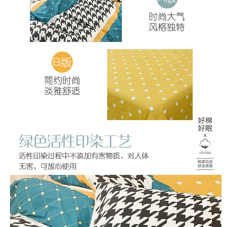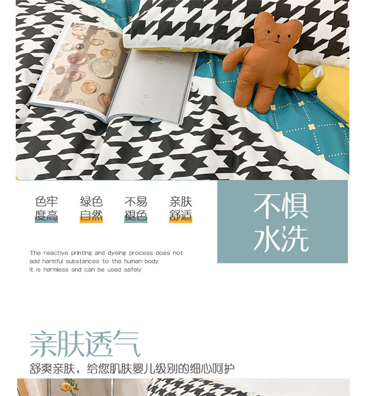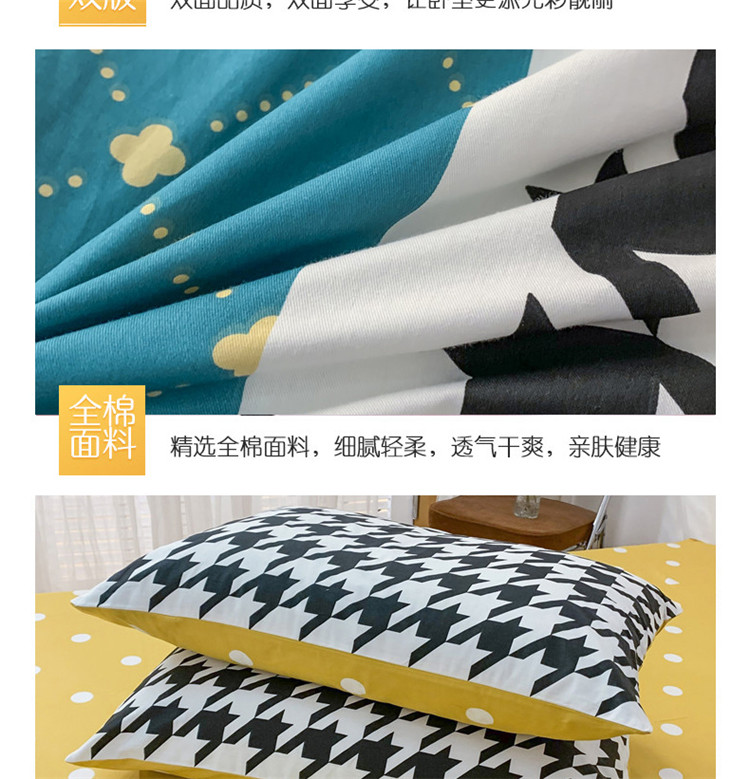 (总)感遇家纺 2022新款全棉印花四件套,格子小花,黑格恐龙,蓝色心情,浅暖