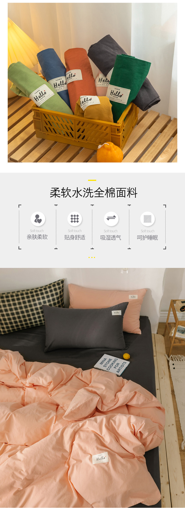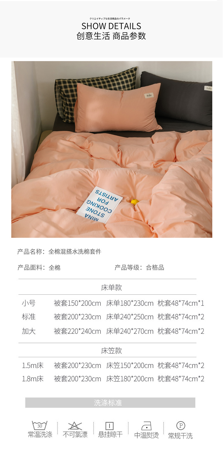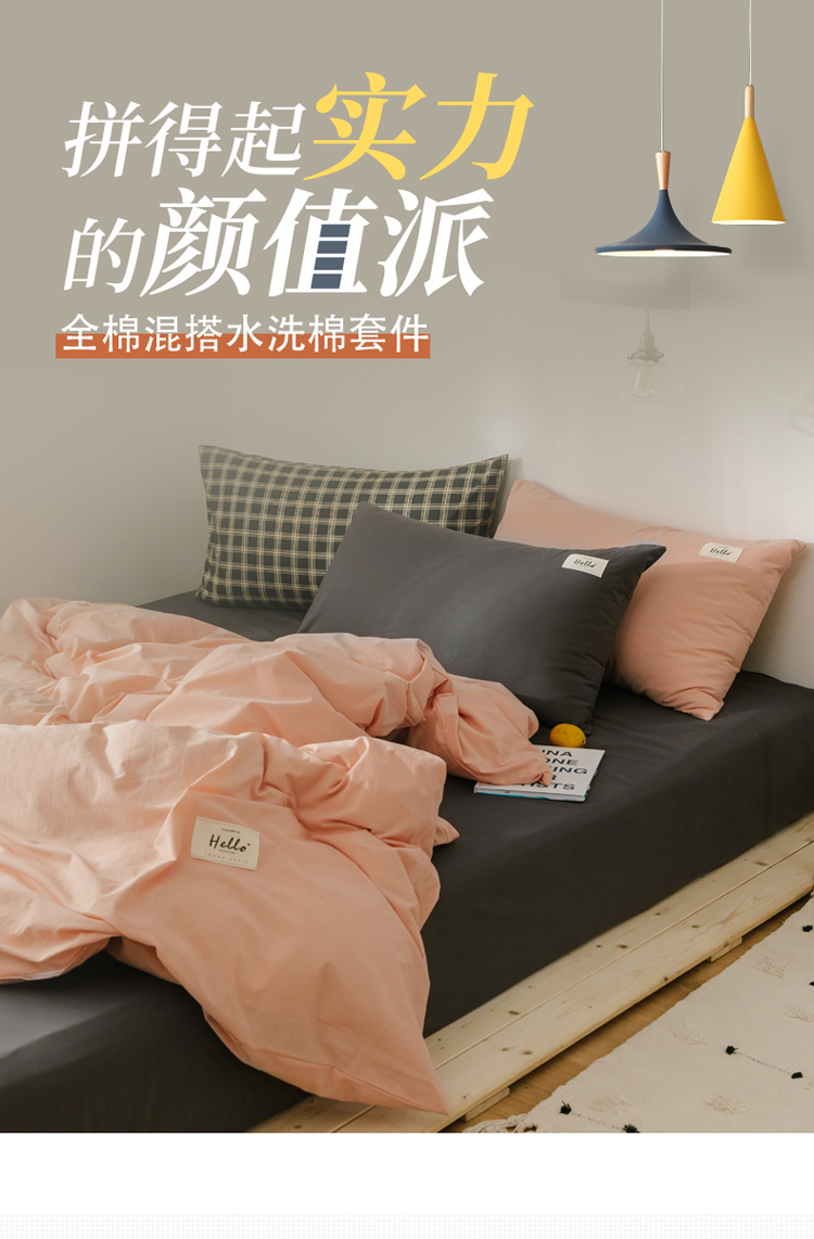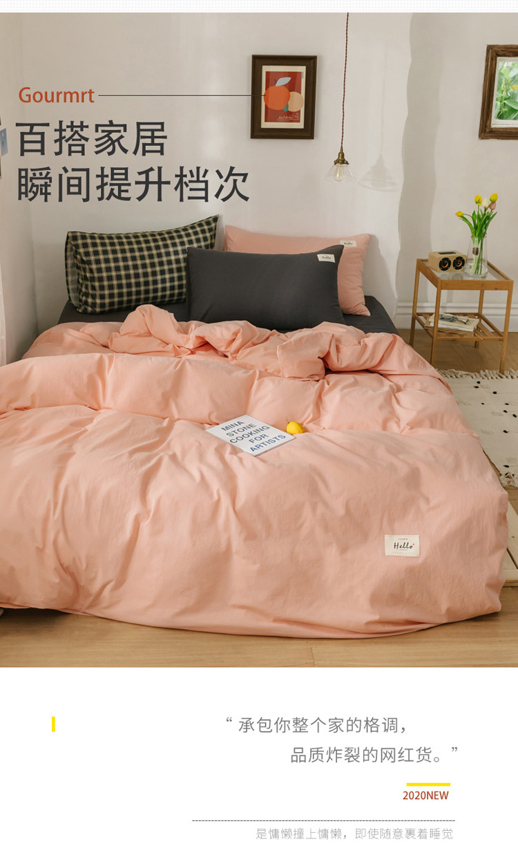 (总)雅居纺家纺 2022新款全棉水洗棉四件套,Ins粉蓝,ins浅蓝,白+墨子绿,白+绅士红,低调灰,低调灰绅士灰,豆绿+米黄,复古绿卡其,果绿绅士黄,焦糖咖啡,咖啡+卡其,米黄,米黄+明黄,米黄咖啡,米黄水绿,墨子绿,墨子绿卡其,墨子绿绅士黄,牛仔蓝低调灰,浅蓝深灰,清雅蓝绅士灰,绅士红卡其,绅士黄卡其,绅士灰,新蓝米黄