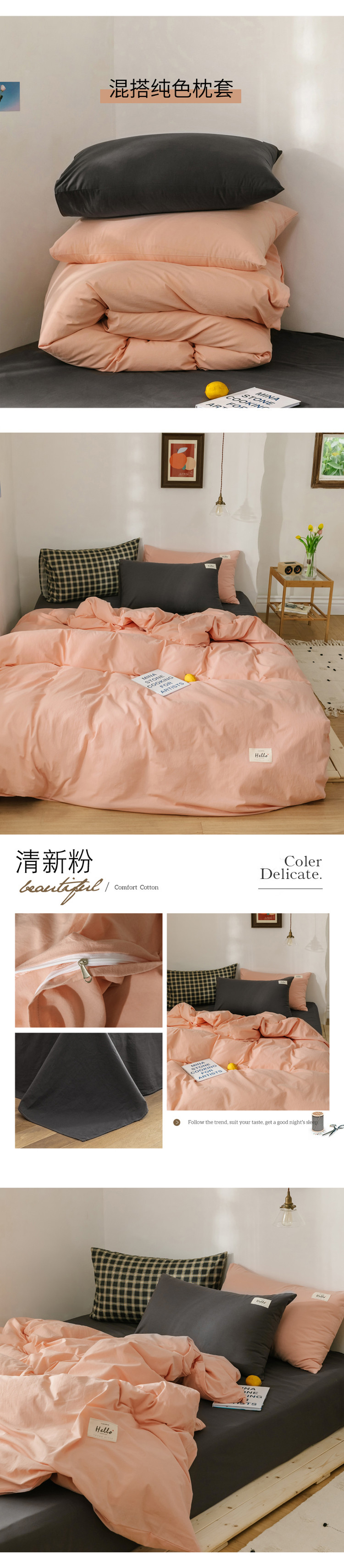 商品名称:雅居纺 2022新款全棉混搭水洗棉四件套 清新粉
