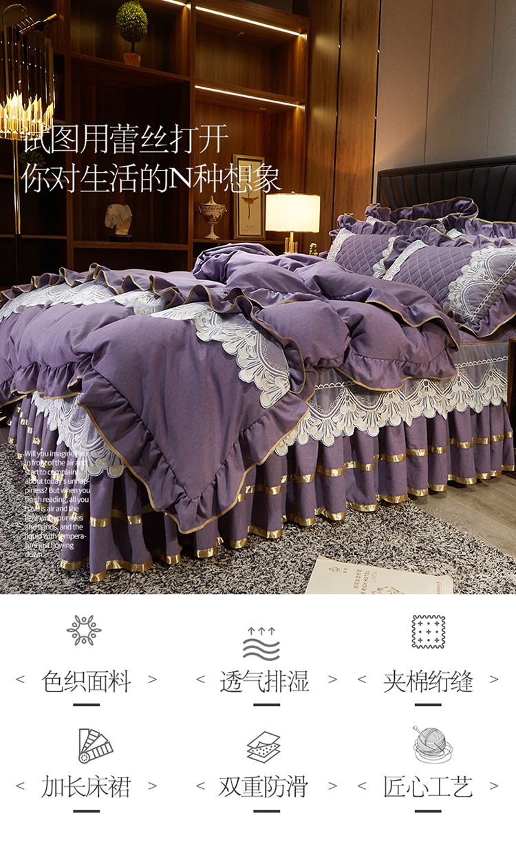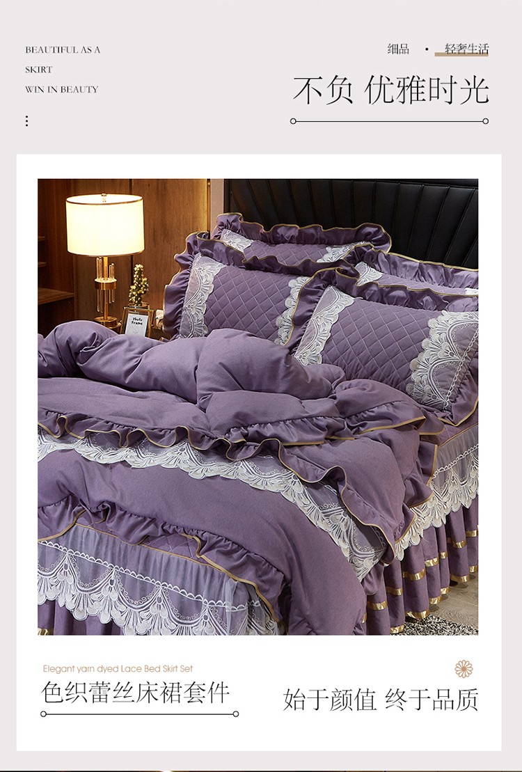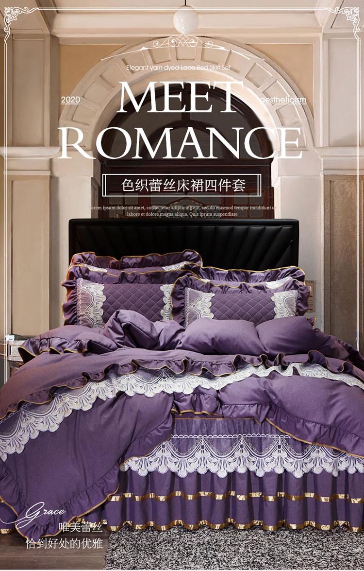 网红馆 2025新款芭莎风情床裙四件套 浪漫紫