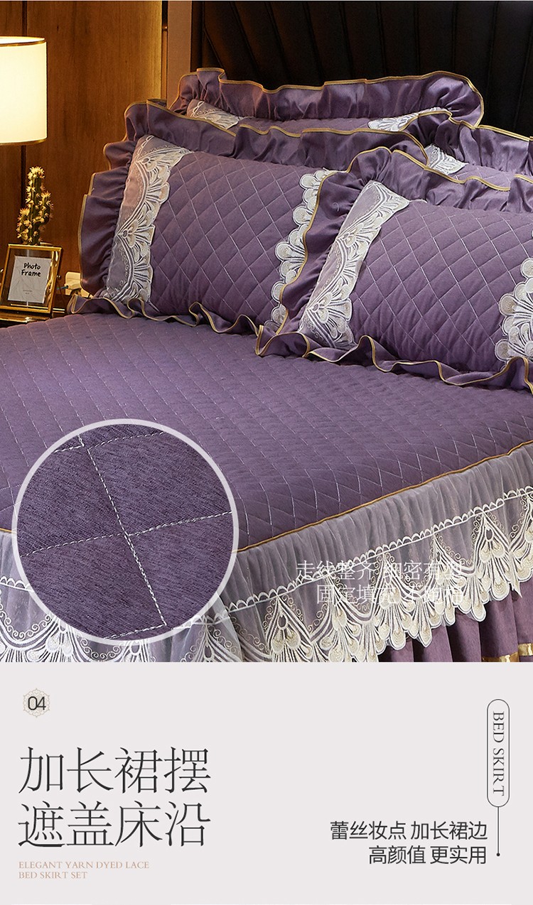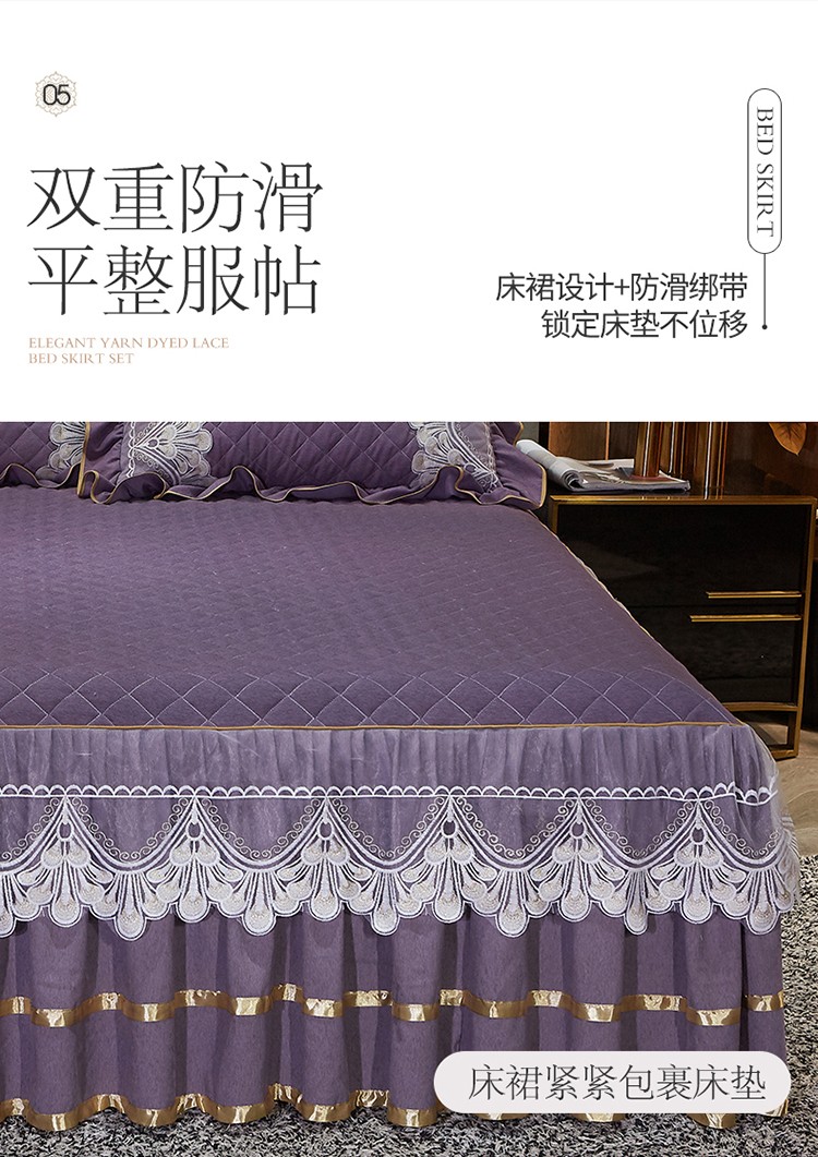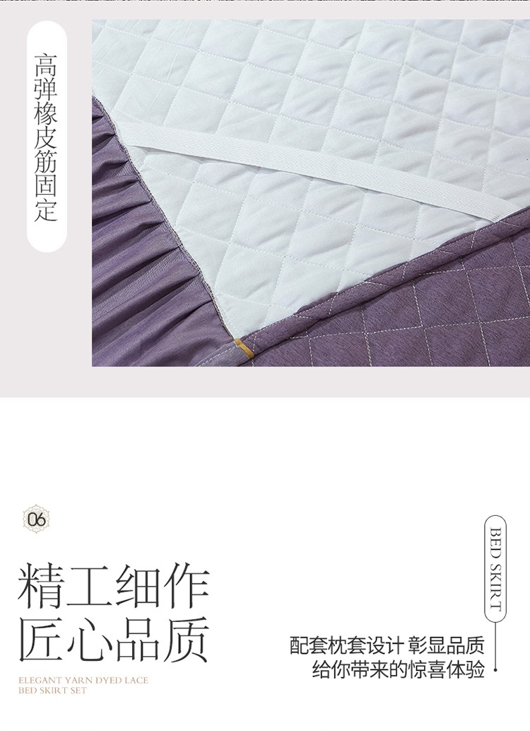 (总)网红馆(ck家纺) 2026新款色织蕾丝边床裙款床笠,宝石蓝,黛绿色,浪漫紫,奶茶色,石青,香妃粉,烟熏灰