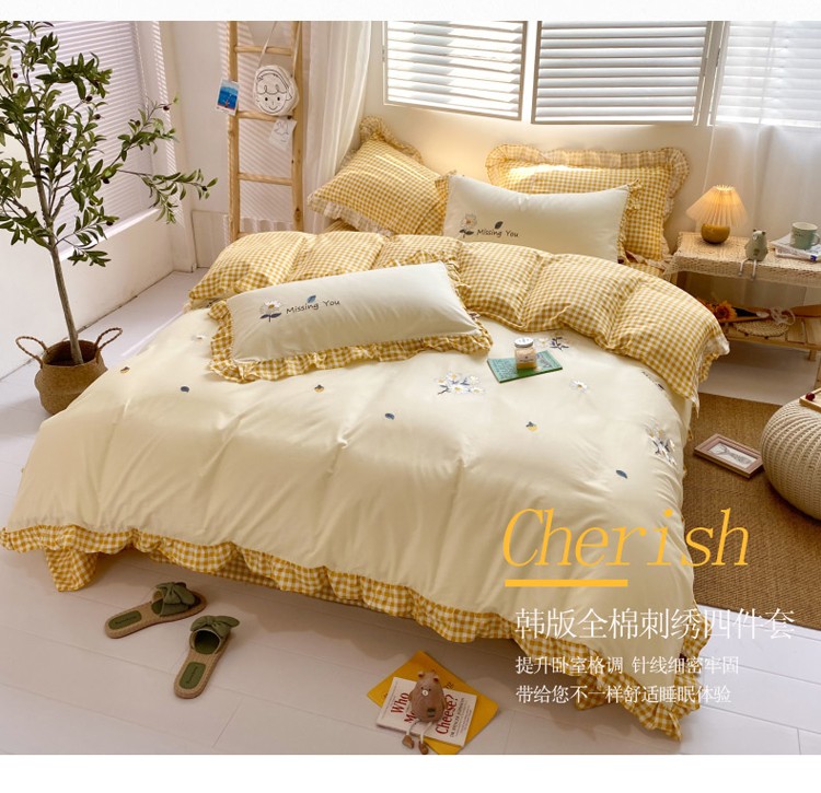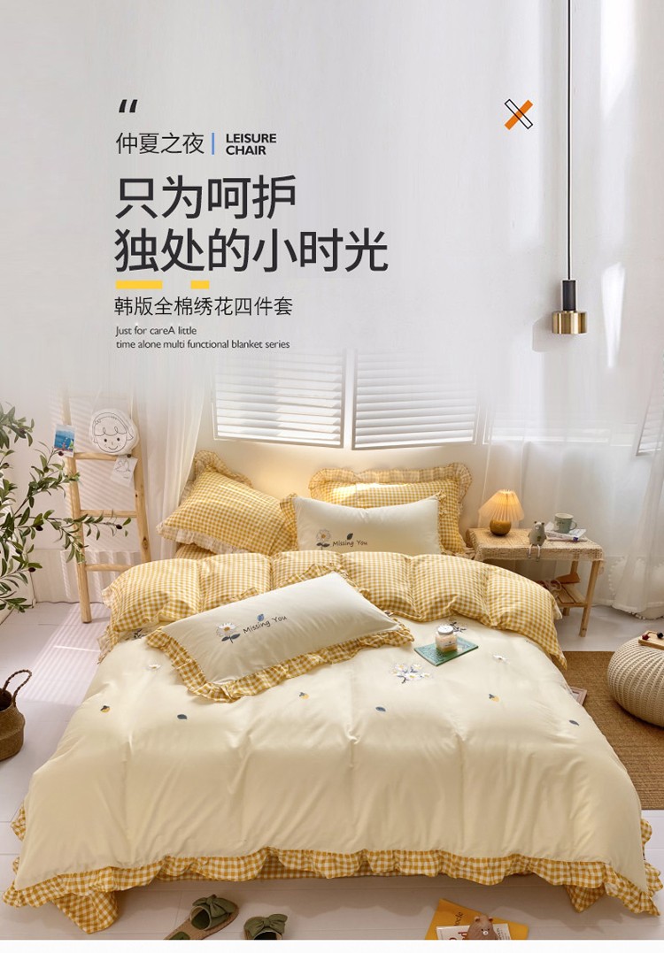 寐居 2021新款纯棉刺绣四件套 雏菊之恋-浅黄