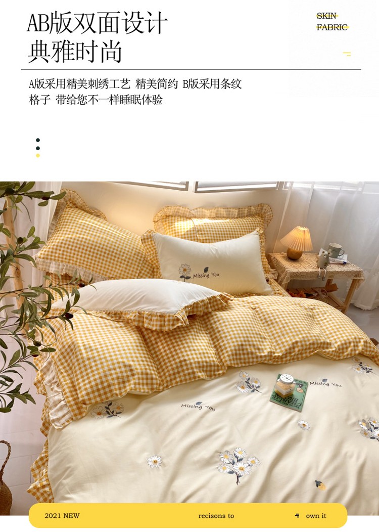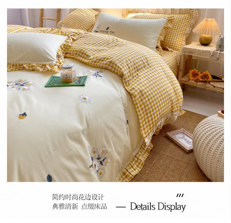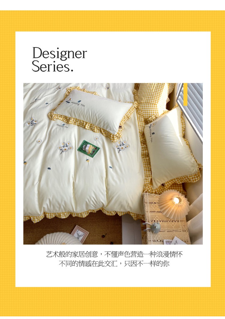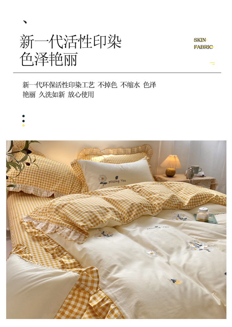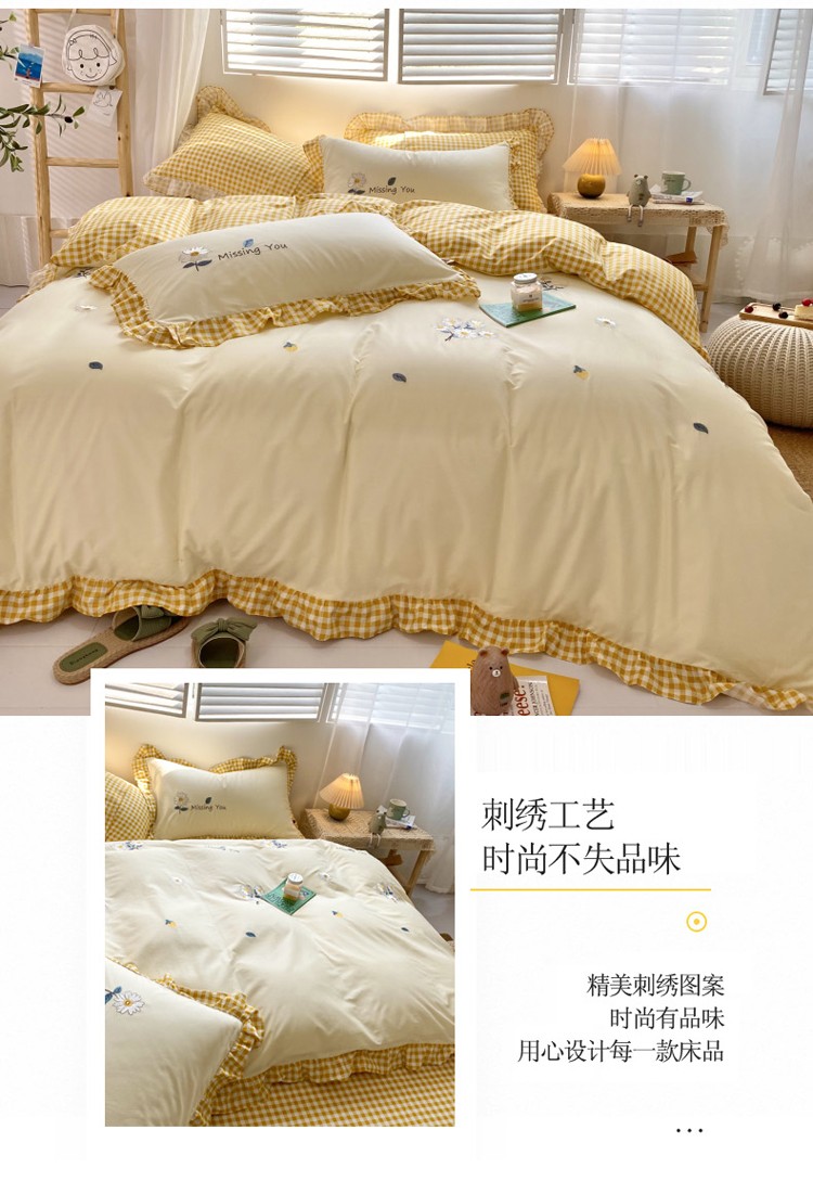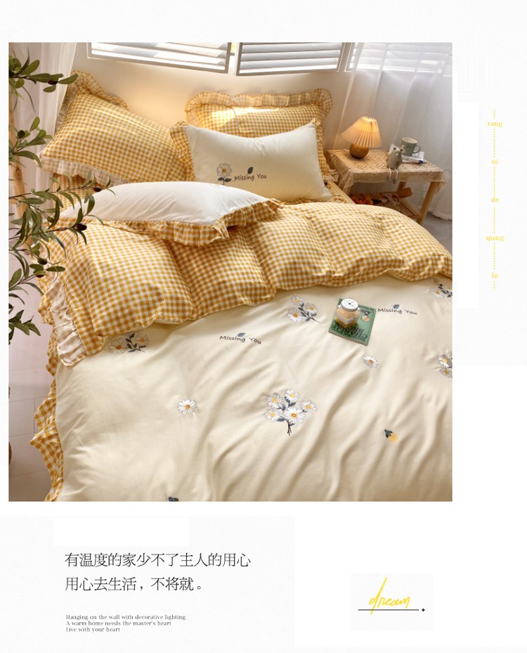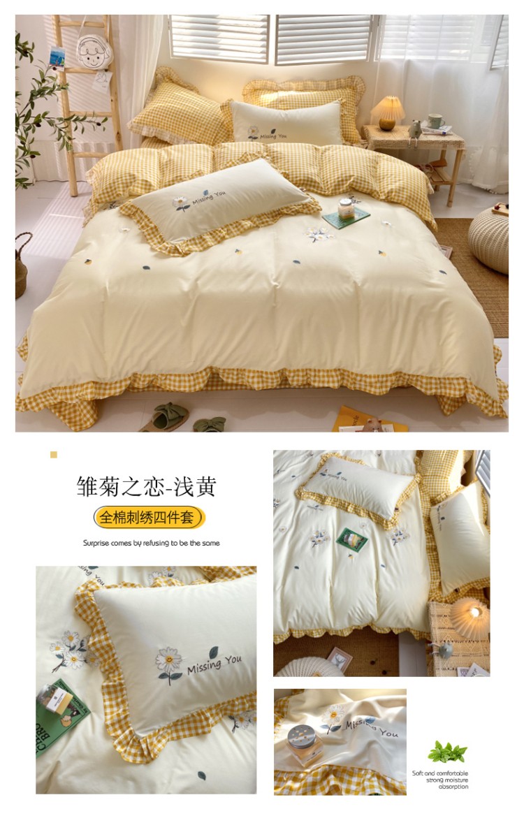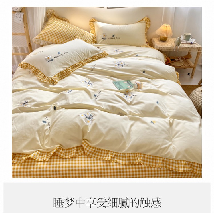 商品名称:寐居 2021新款纯棉刺绣四件套 雏菊之恋-浅黄