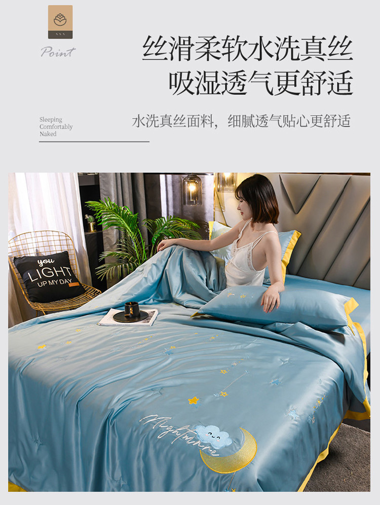 当前位置: 91家纺网 > 商品网购 > 被子 > 夏被 > 印季 2021新款水洗真丝满版绣星月夜夏被四件套 星月夜-天青