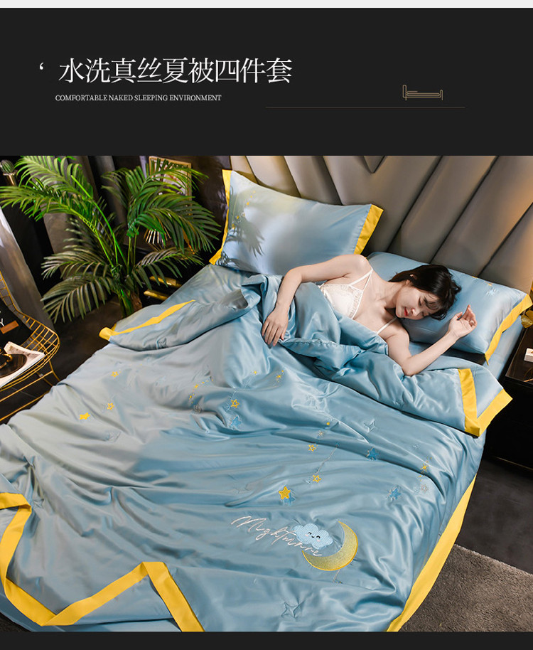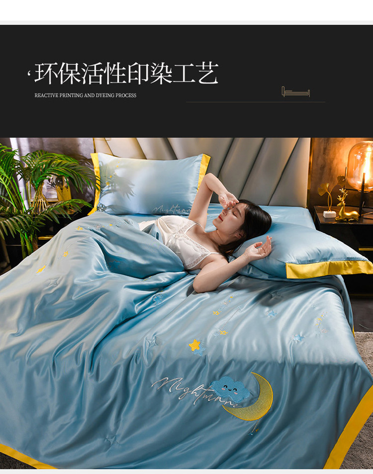 • 91家纺网 家纺一手货源 找家纺 印季 2021新款水洗真丝满版绣星月夜夏被四件套 星月夜-天青