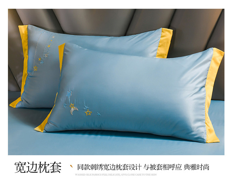 印季 2021新款水洗真丝满版绣星月夜夏被四件套 星月夜-天青