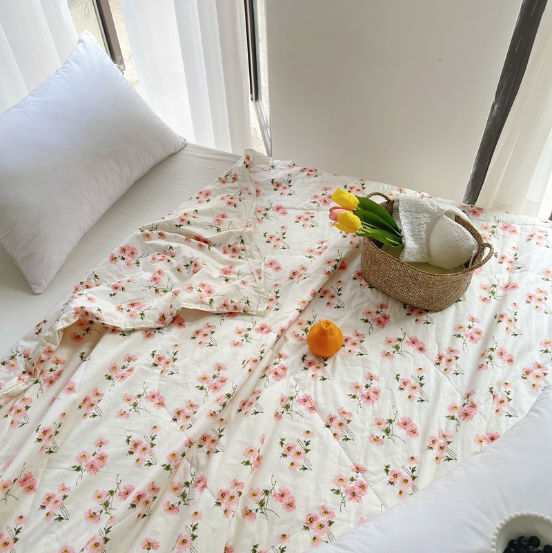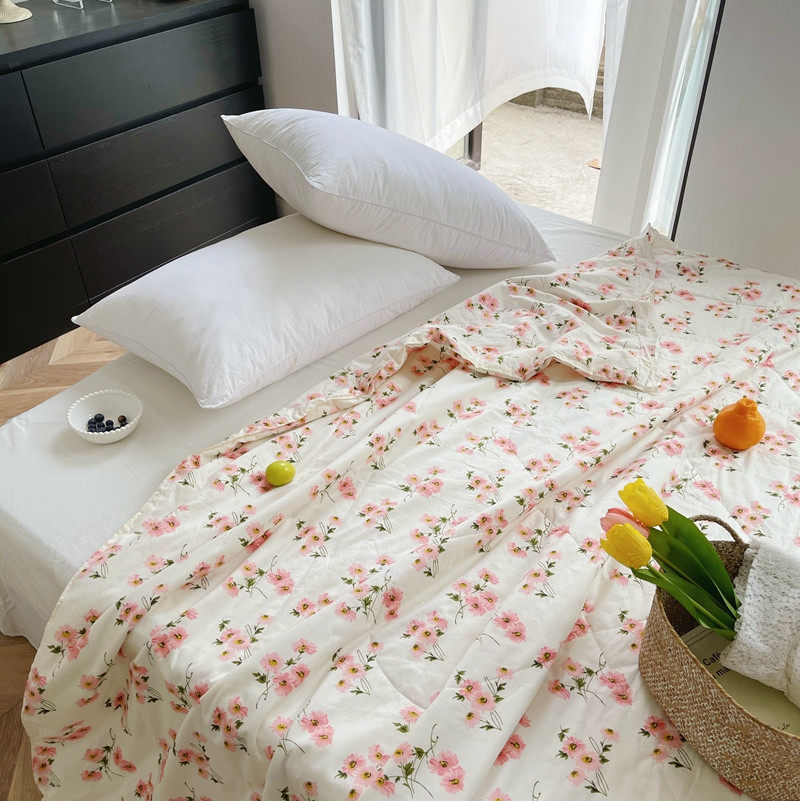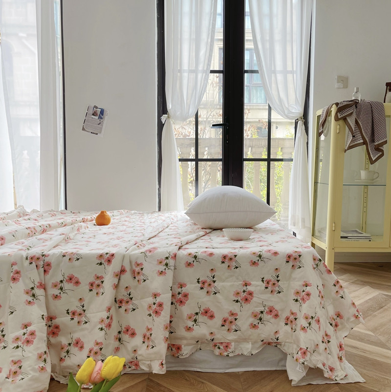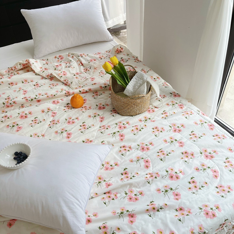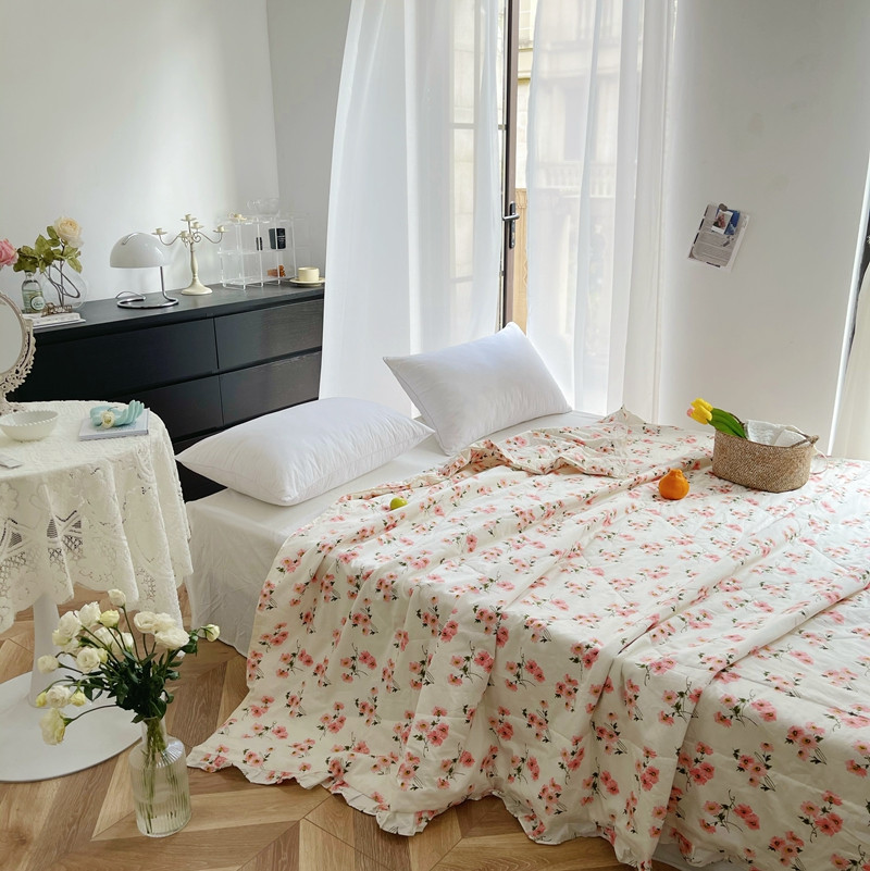 星期八 2021新款田园风奶油花边大豆夏被 樱花