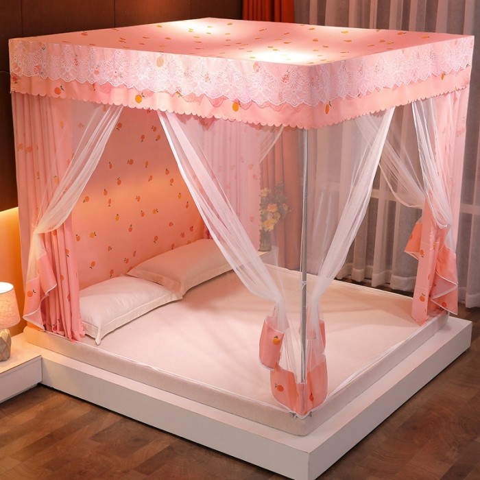 商品名称:千逸虹 2024新款坐床全底纱 遮光蚊帐 粉色心情