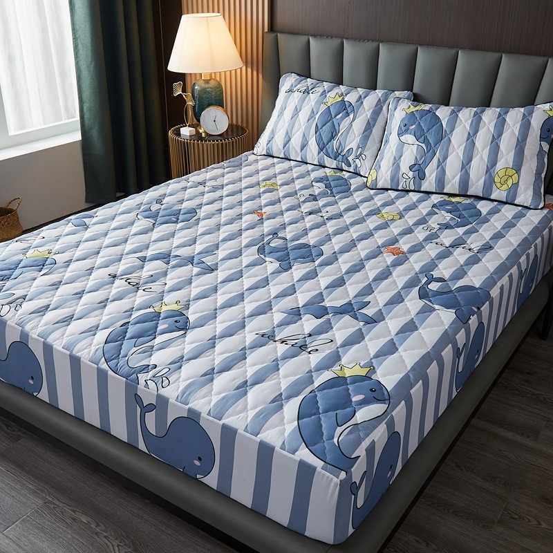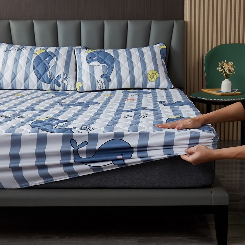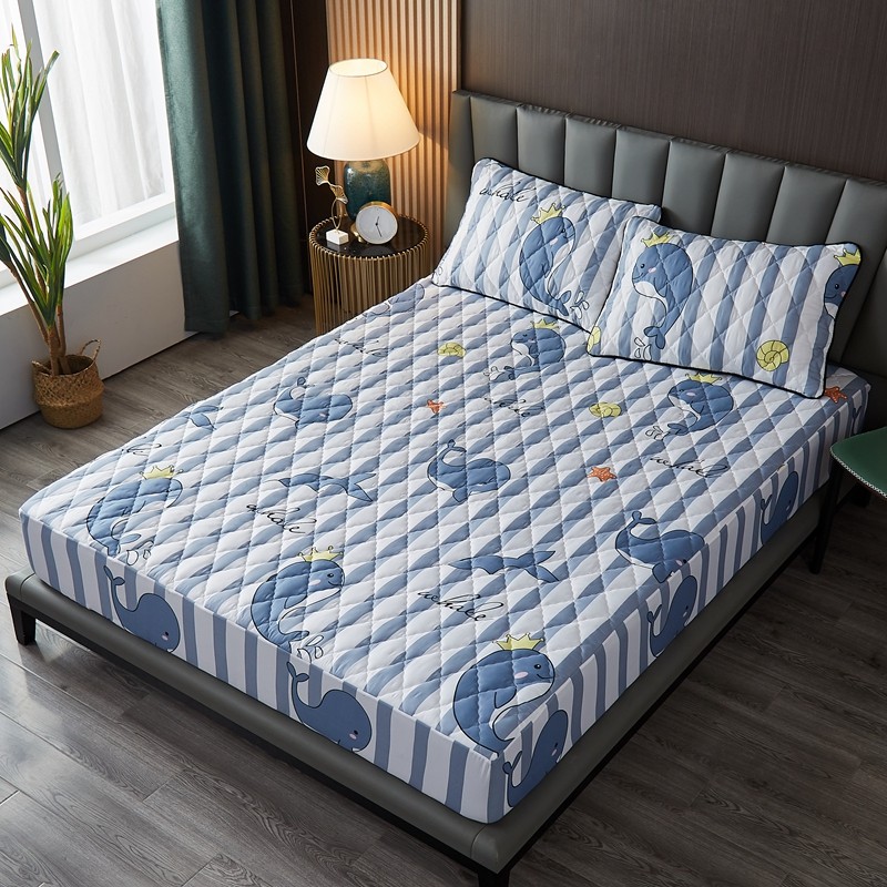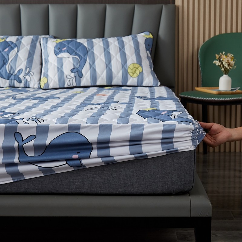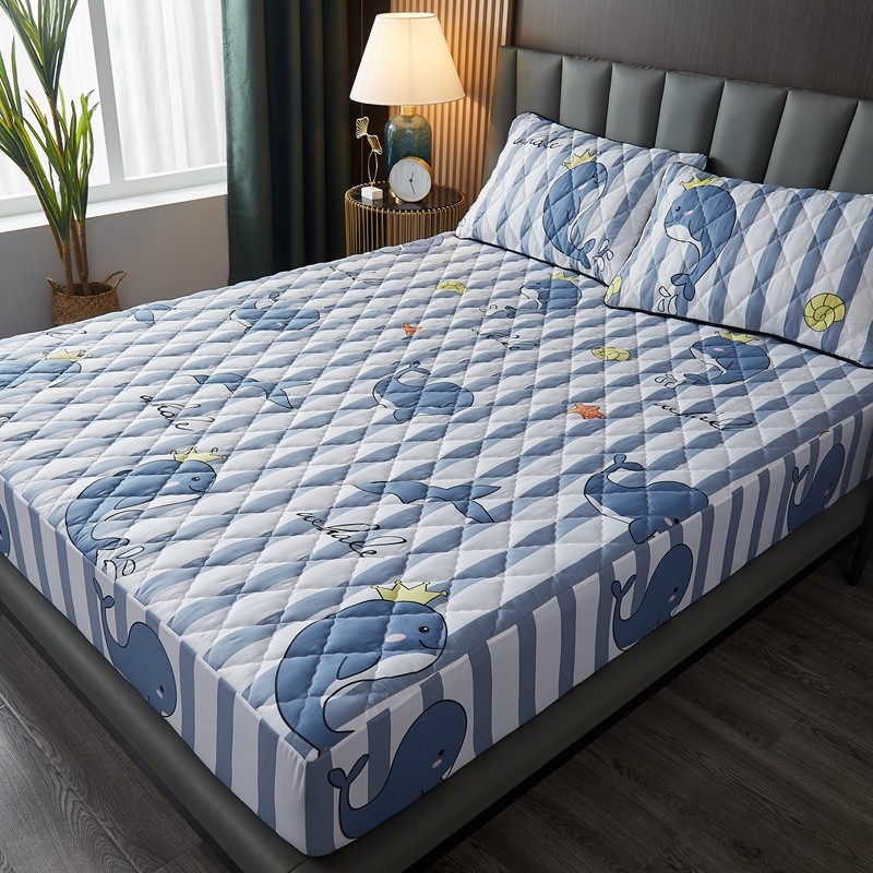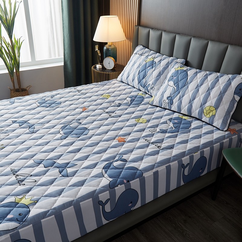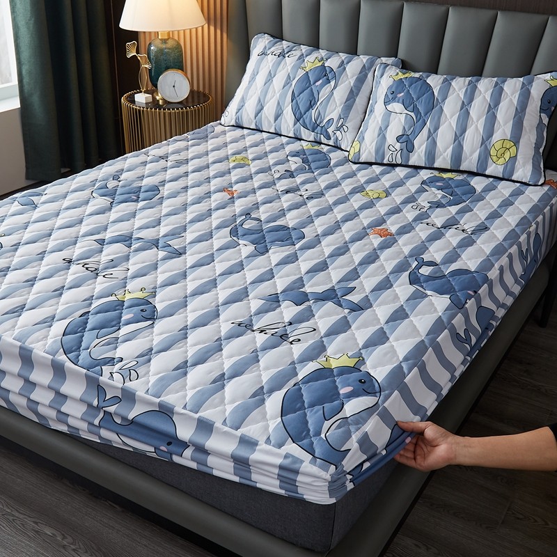 商品名称:花言狐语 2025新款水洗棉防水隔尿夹棉床笠欢乐小海豚