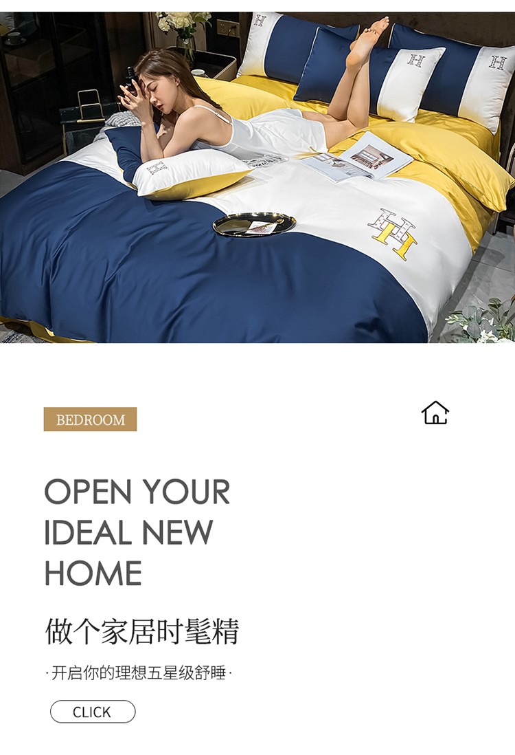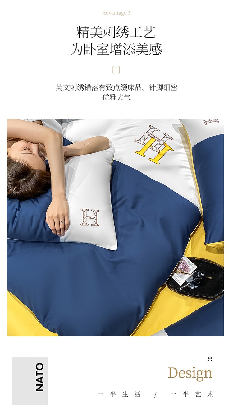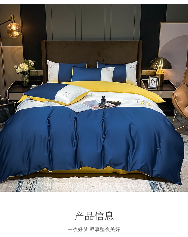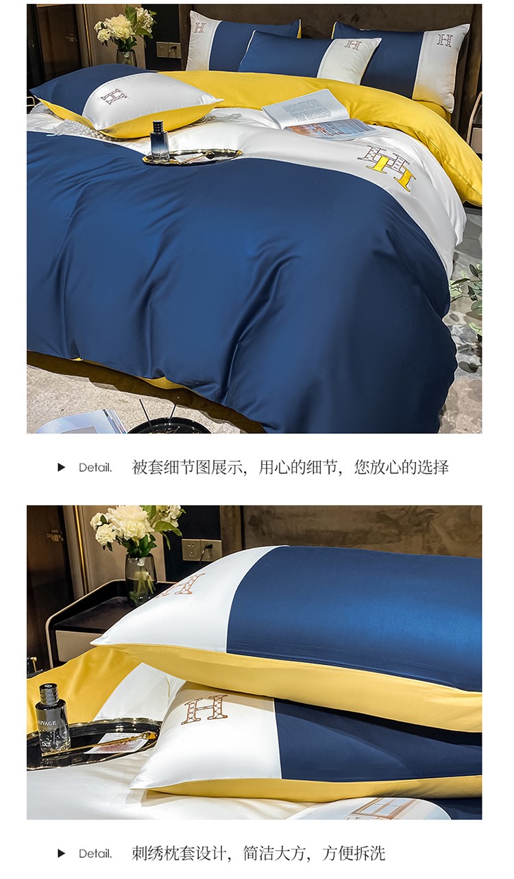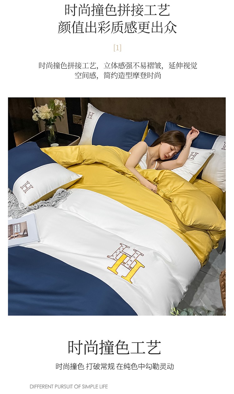 当前位置: 91家纺网 > 商品网购 > 床品套件 > 四件套 > 全棉普通四件套 > 莱登卡奴 2021新款全棉轻奢撞色刺绣系列四件套 丈青姜黄