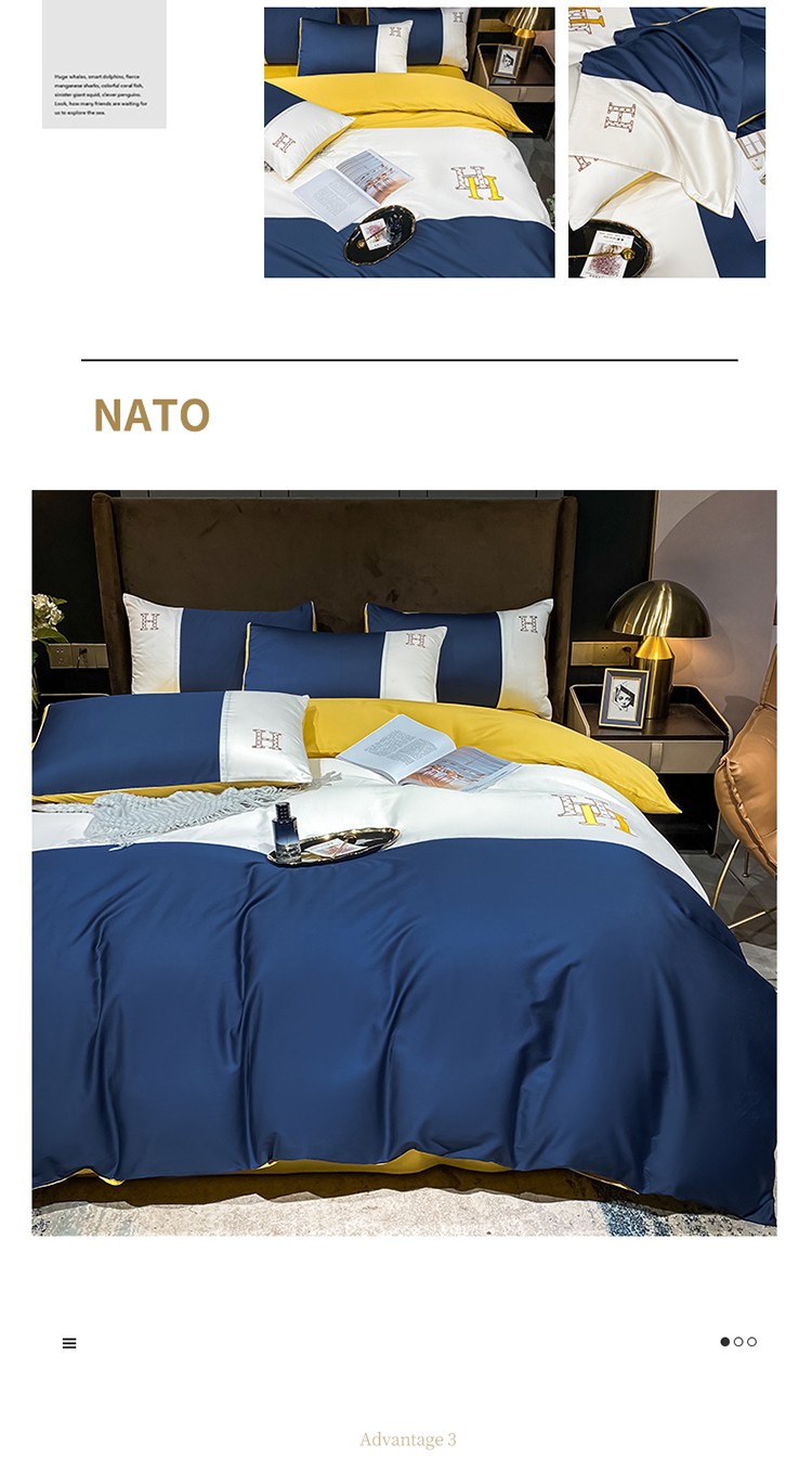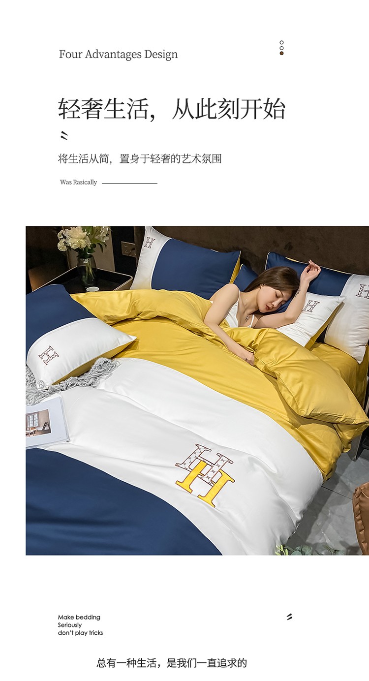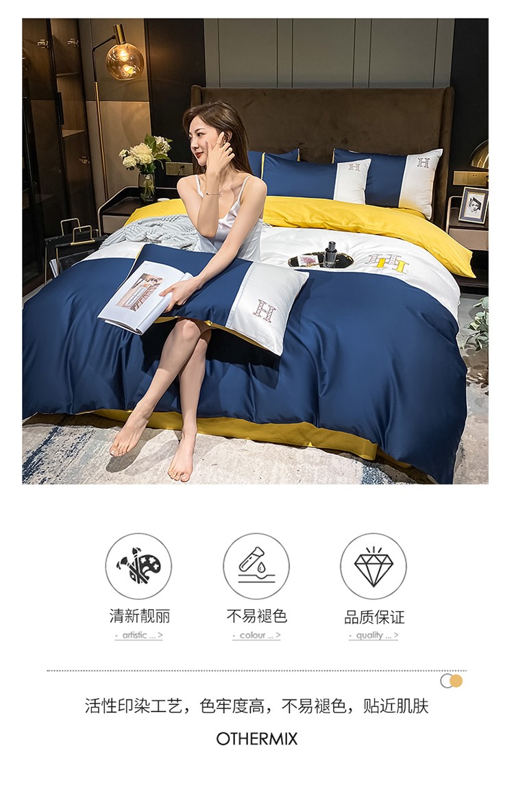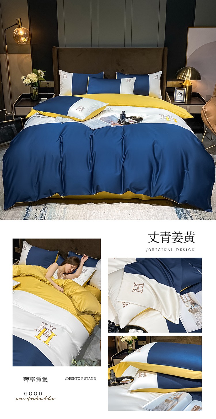 当前位置: 91家纺网 > 商品网购 > 床品套件 > 四件套 > 全棉普通四件套 > 莱登卡奴 2021新款全棉轻奢撞色刺绣系列四件套 丈青姜黄