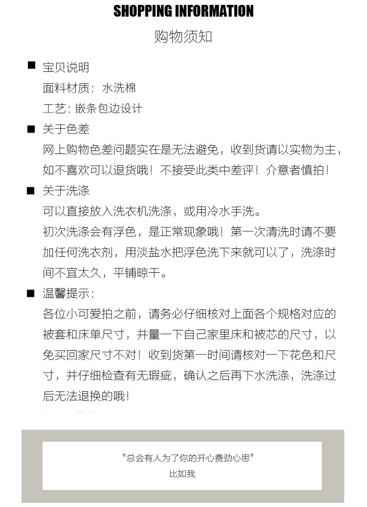 3、通州区市场监督局友情提醒,近期涉及到床上用品不褪色不掉毛不缩水的投诉和以世界知名品牌图案为面料的床品举报较多。请各商家自检自查,对照整改或进行下架处理。