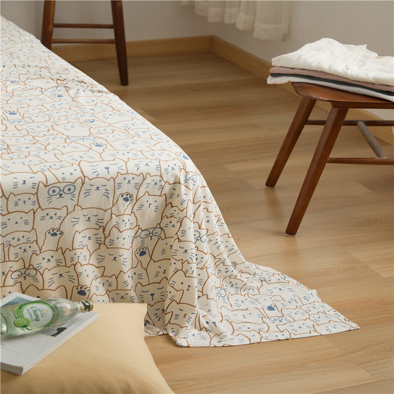 原研家居 新款kinfolk原研针织棉印花单床单 猫咪米