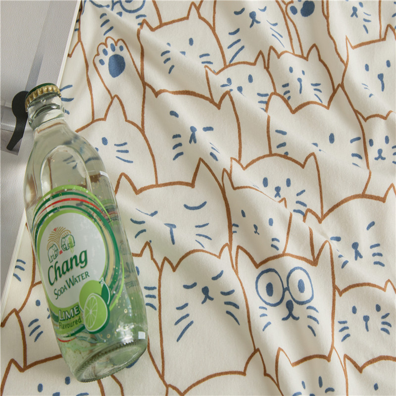 商品名称:原研家居 新款kinfolk原研针织棉印花单床单 猫咪米