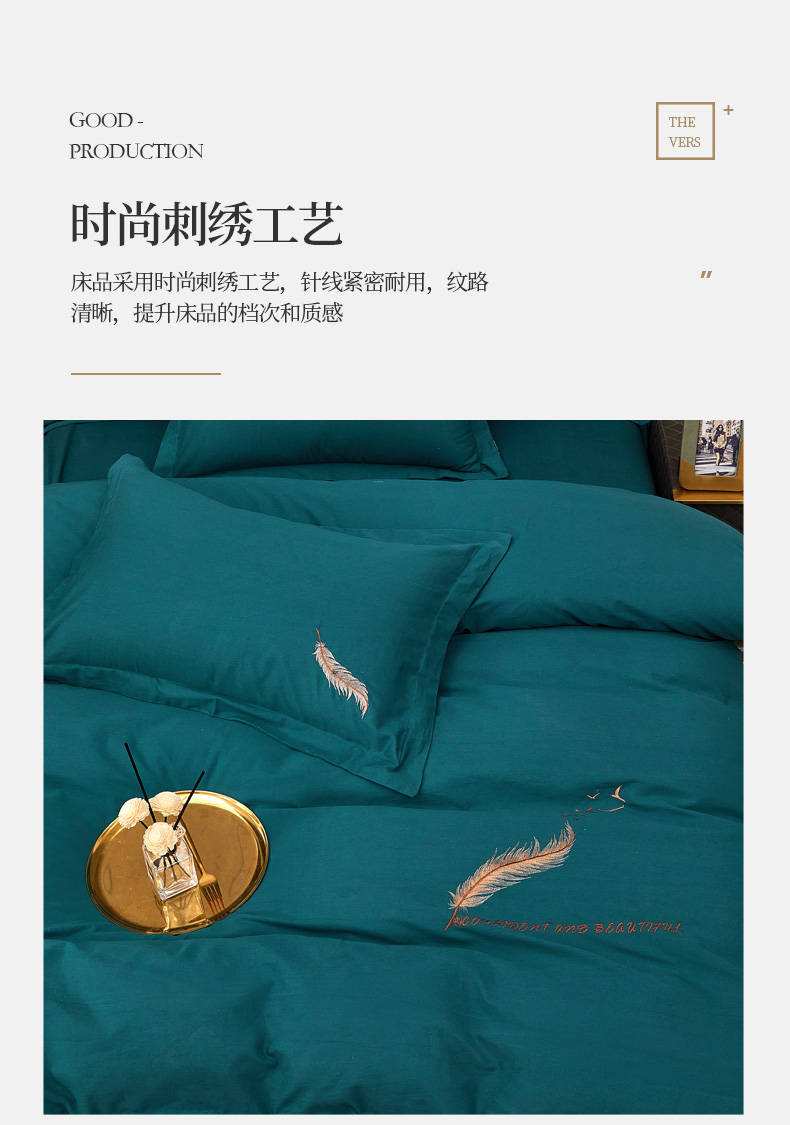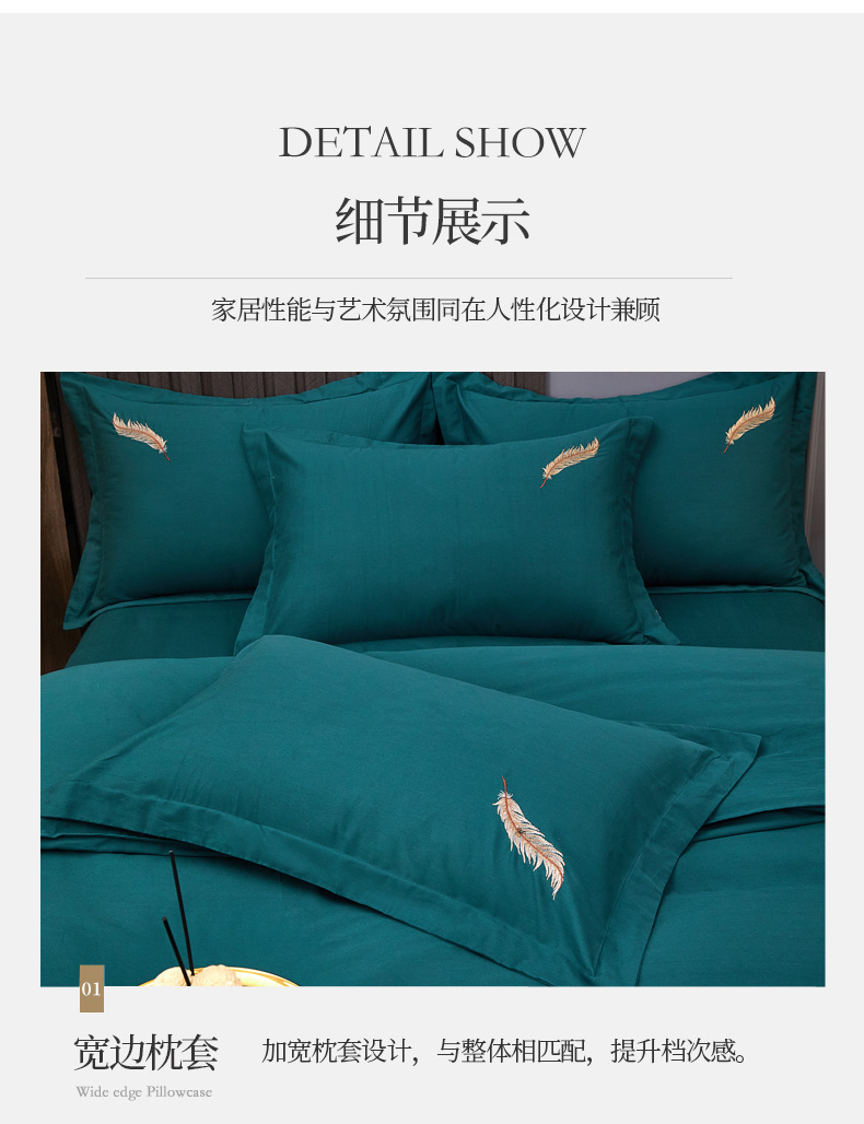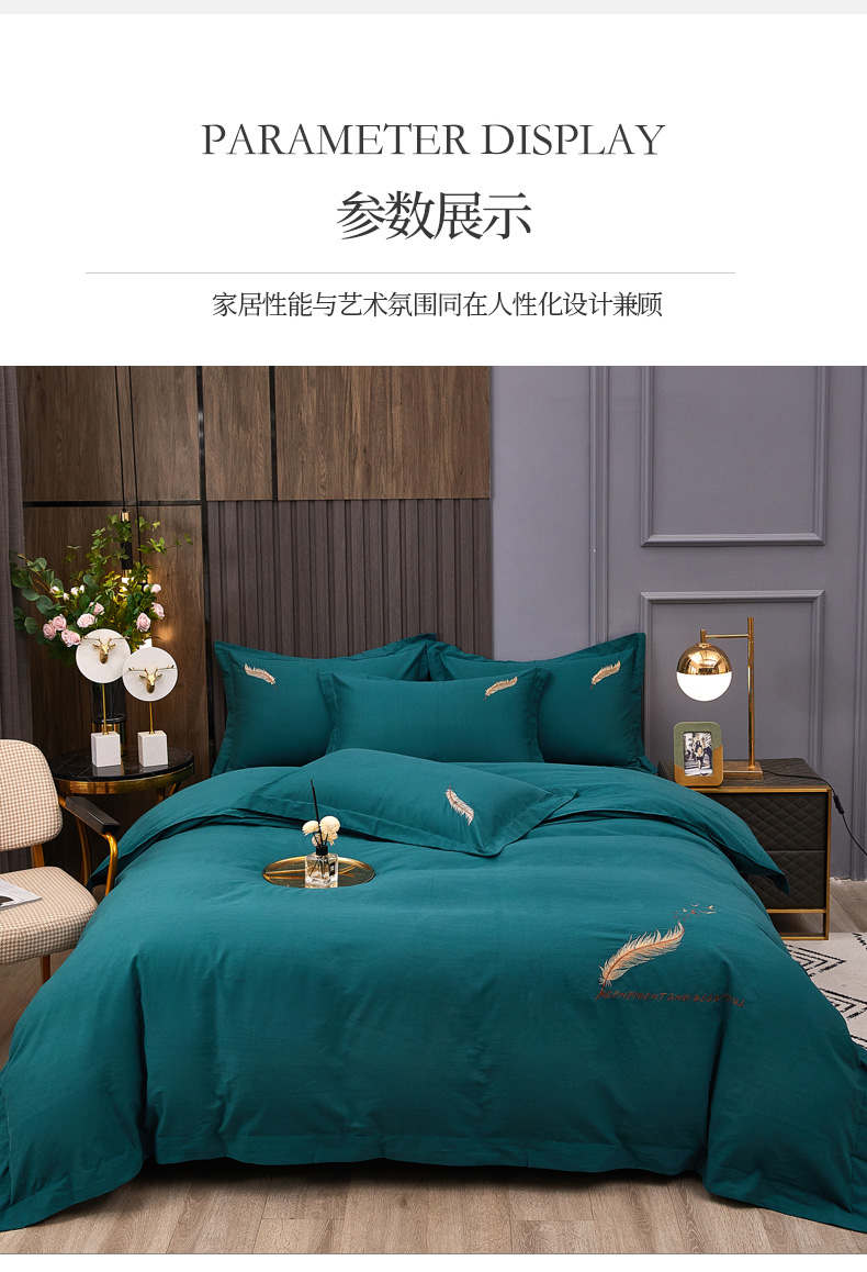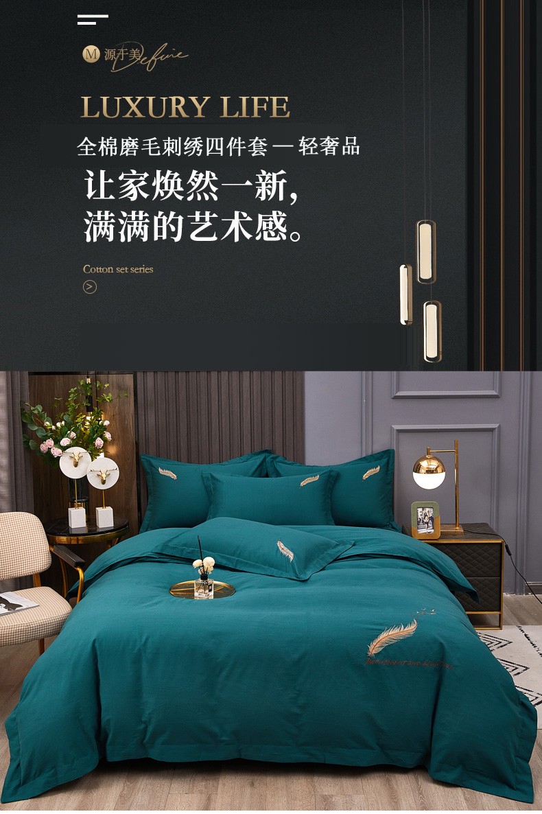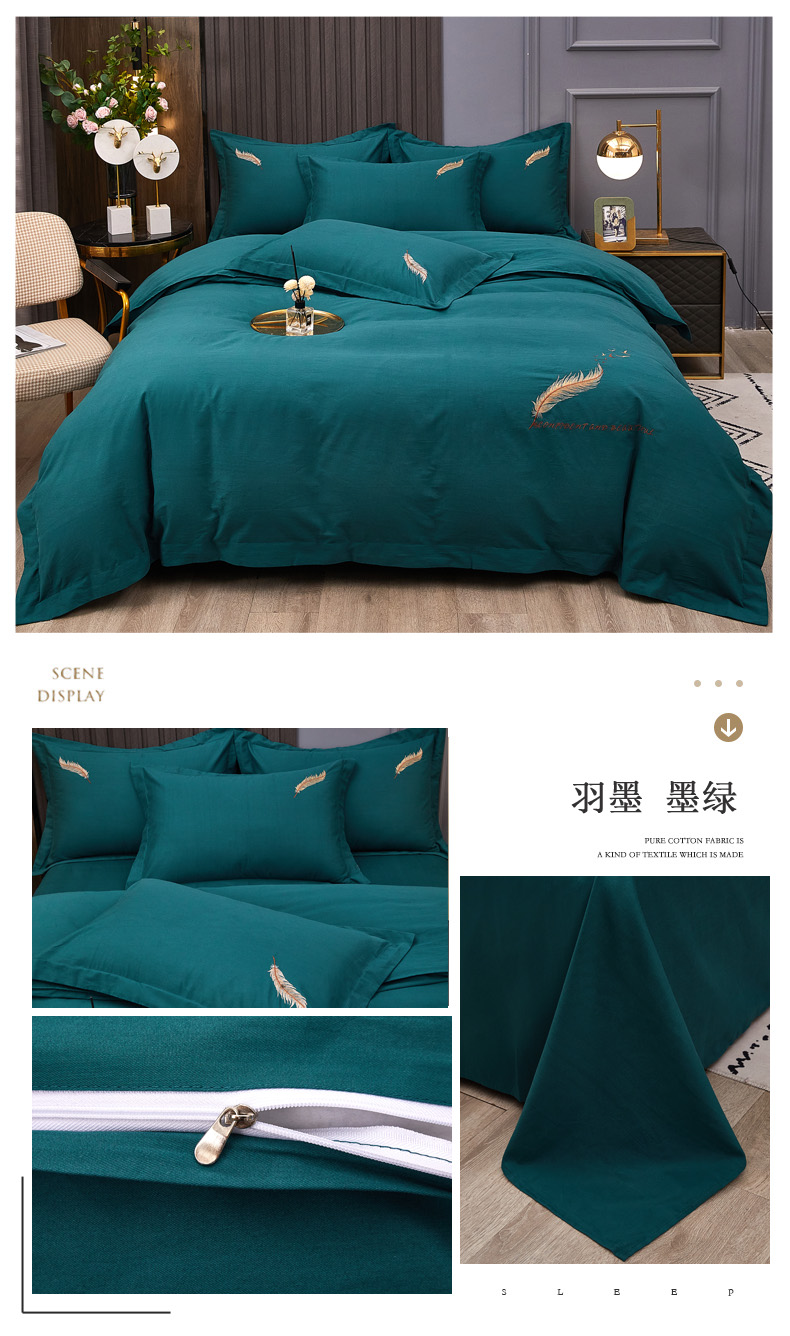 商品名称:芊寻 2024新款60支全棉磨毛绣花四件套 羽墨 墨绿
