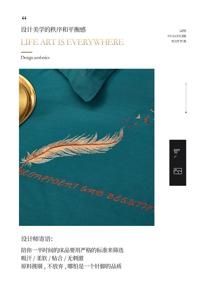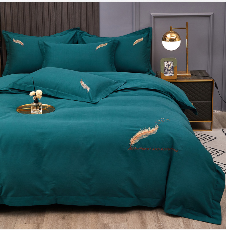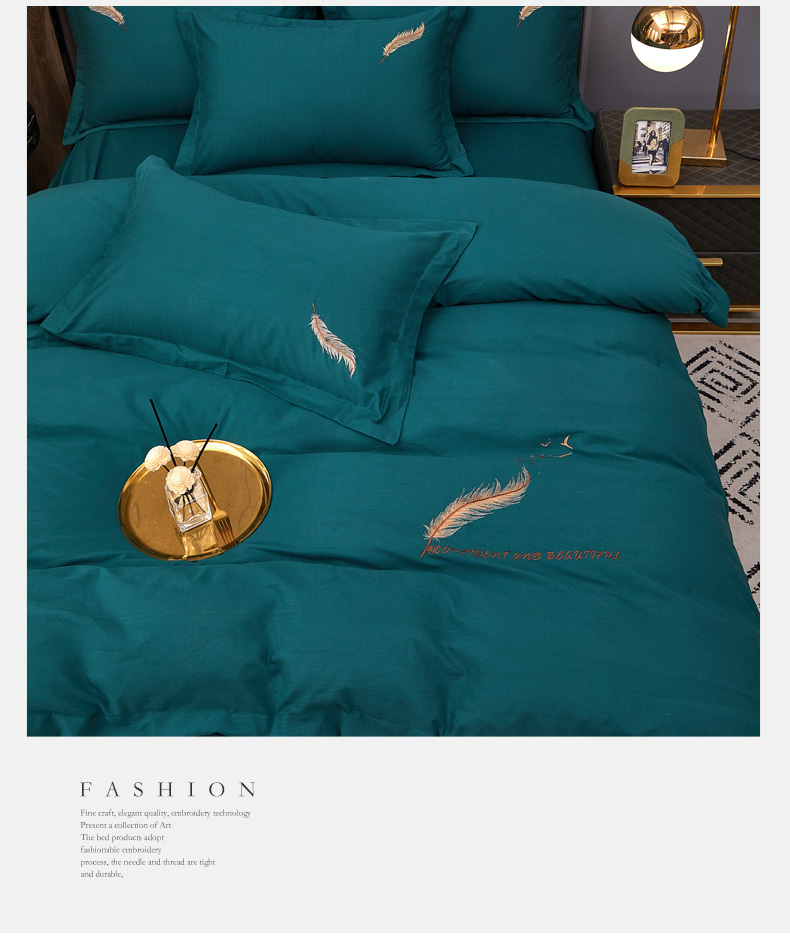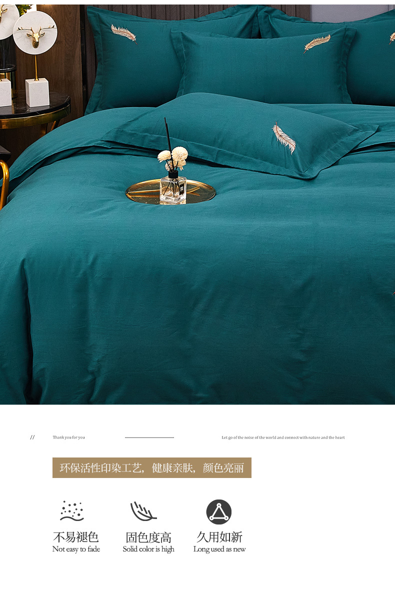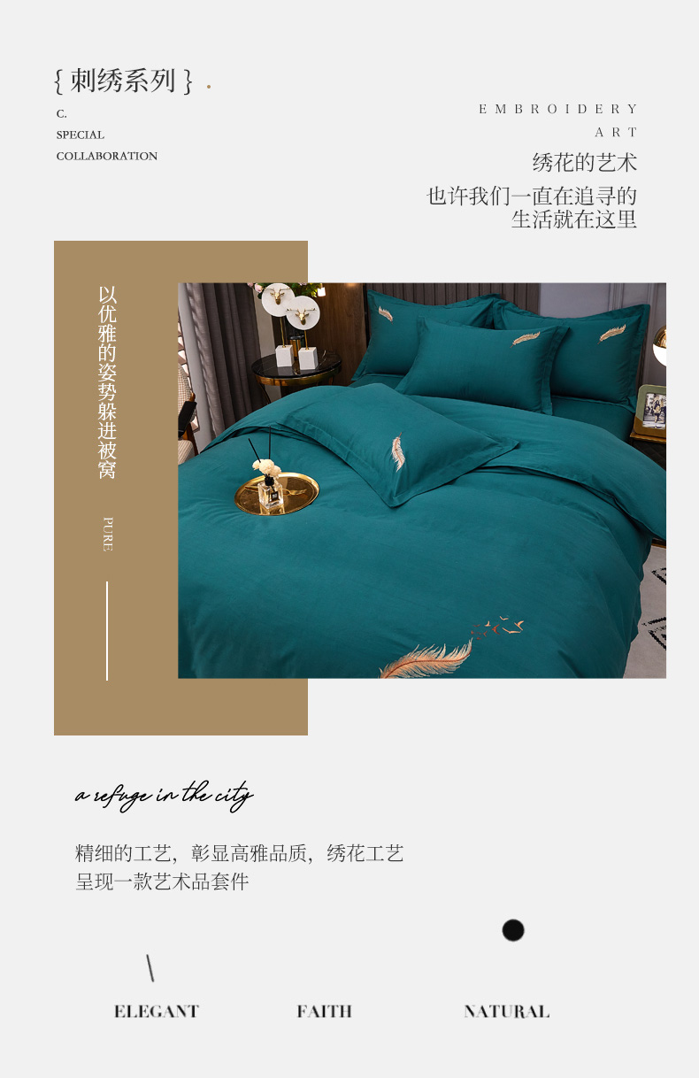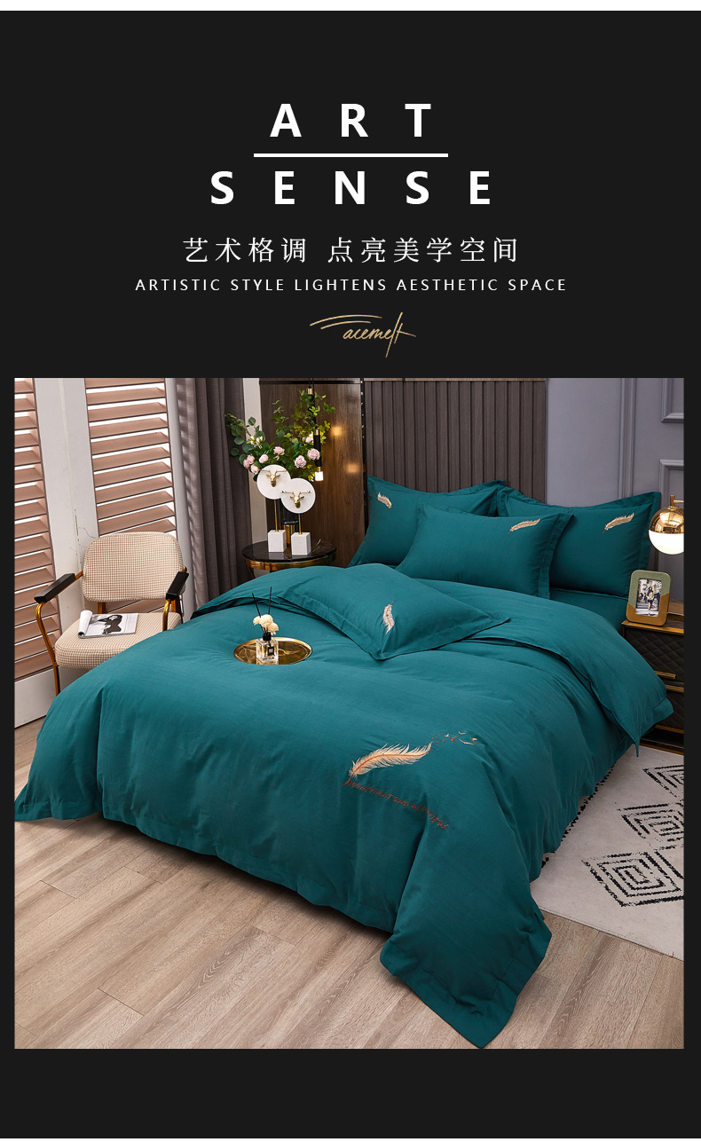 商品名称:芊寻 2024新款60支全棉磨毛绣花四件套 羽墨 墨绿