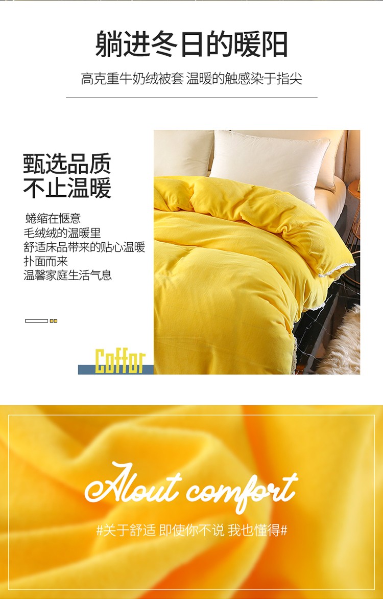商品名称:琪琪阁家纺 2021新款加厚牛奶绒单被套 奶油黄