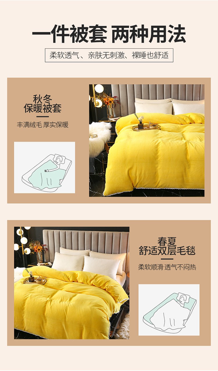 琪琪阁家纺 2021新款加厚牛奶绒单被套 奶油黄