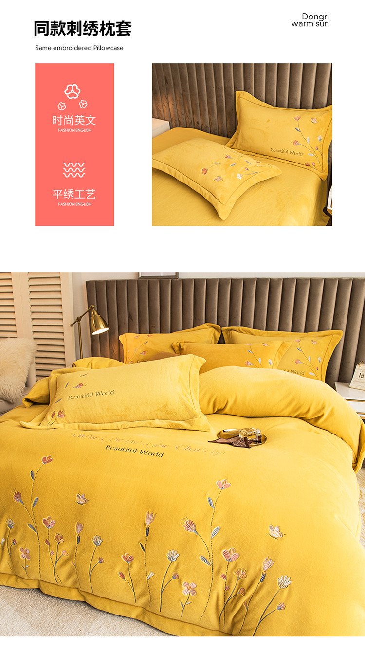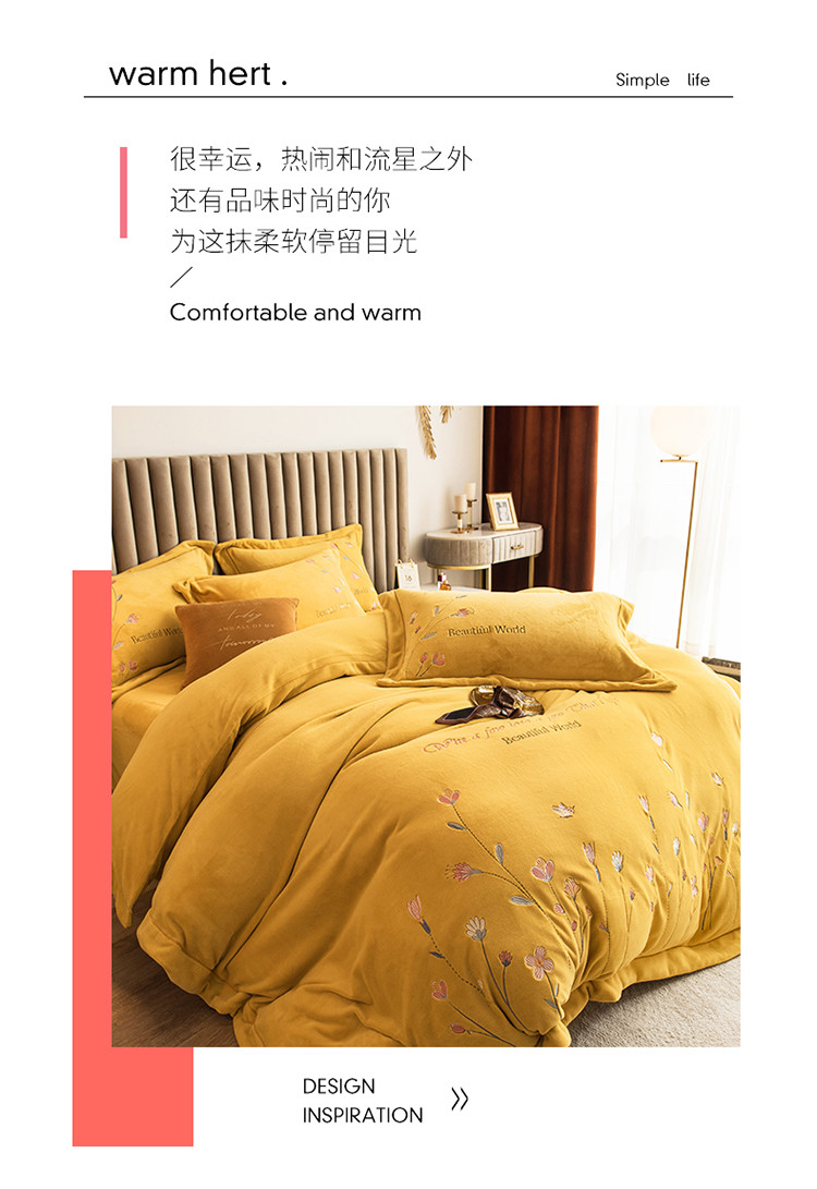 (总)绒博士 2025新款270克牛奶绒双拼角刺绣宽边款四件套--维也纳系列,维也纳-粉豆沙,维也纳-果绿,维也纳-浅咖,维也纳-浅蓝