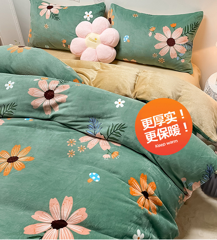 芃成家纺 2021新款牛奶绒印花四件套 花开那年