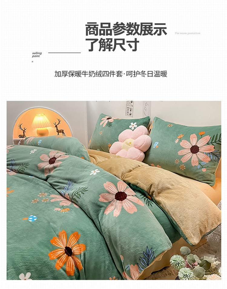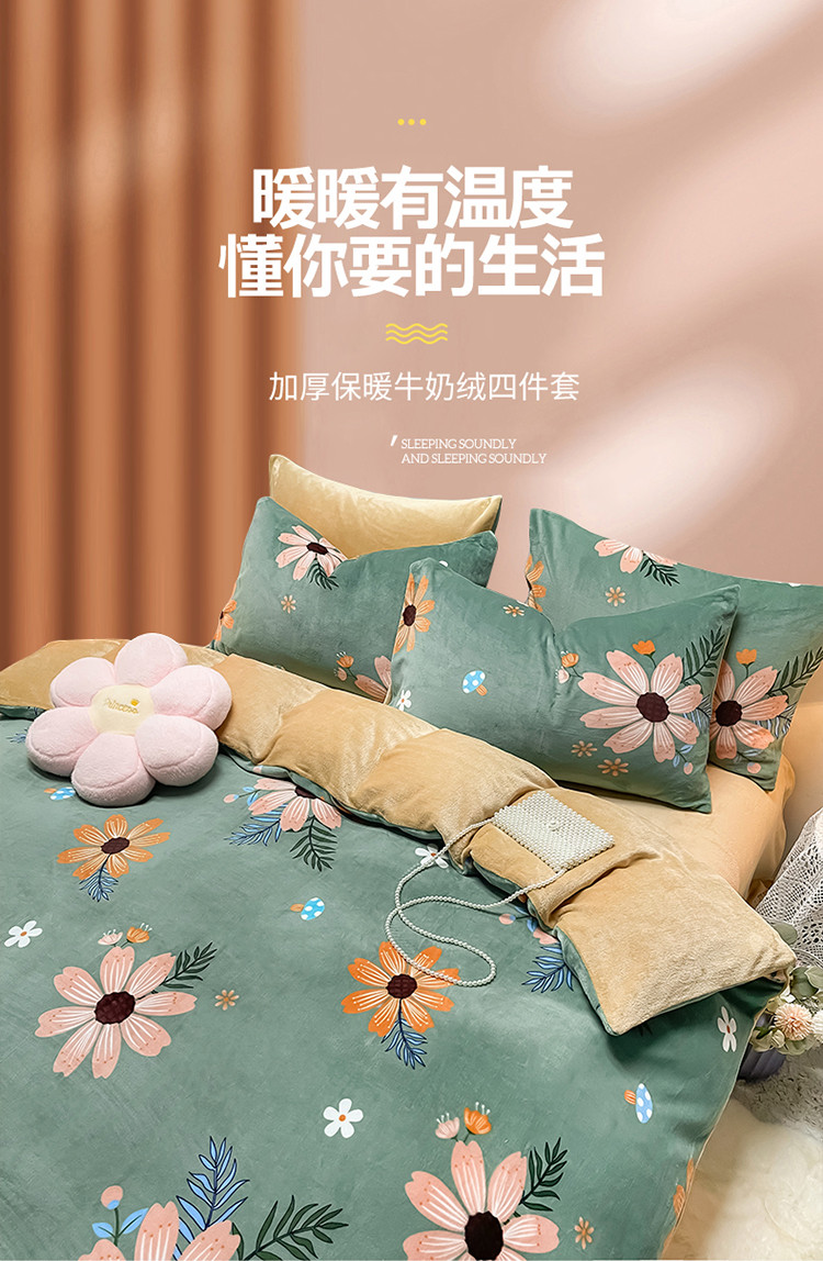 商品名称:芃成家纺 2021新款牛奶绒印花四件套 花开那年