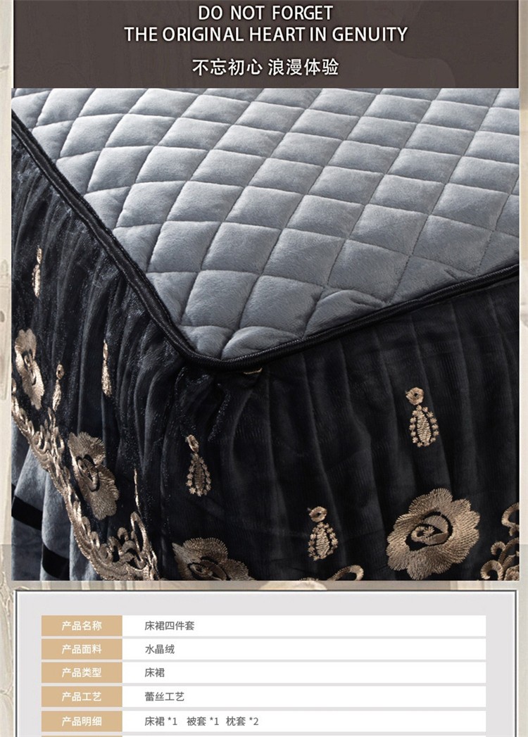 (总)2024加厚夹棉水晶绒床裙四件套绗缝蕾丝花边牛奶绒法莱绒宝宝绒,宝石兰,藏青,豆沙,粉玉,灰,酒红,墨绿,月光蓝